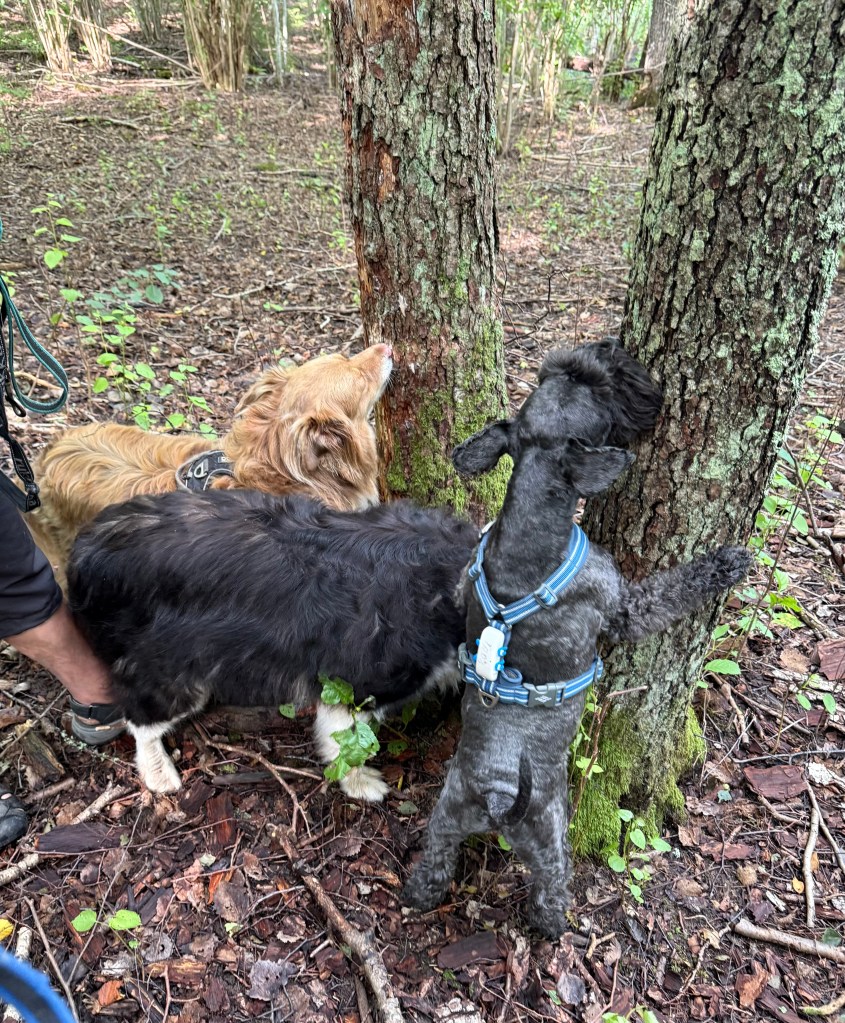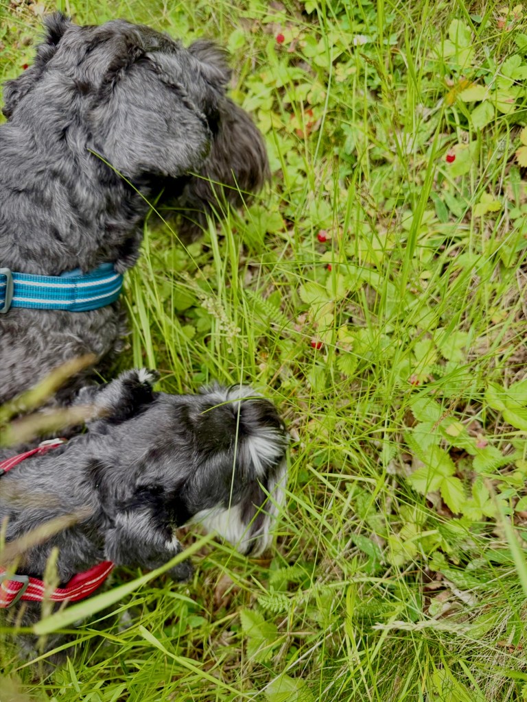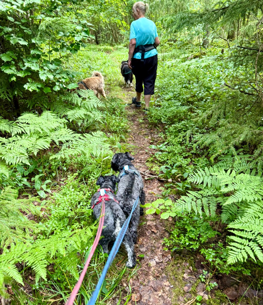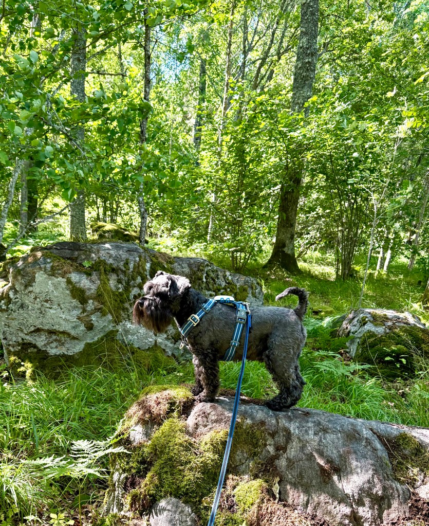 Promenad i en skog vi inte varit i på länge. Numer får vi inte vara lösa då det finns vargrevir i närheten