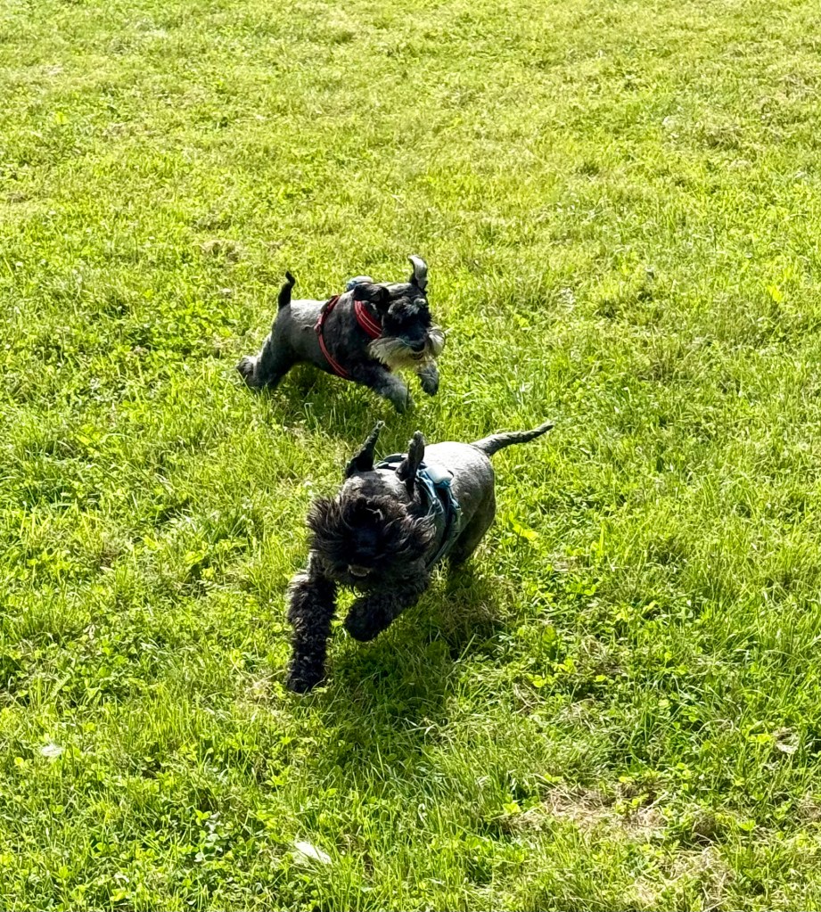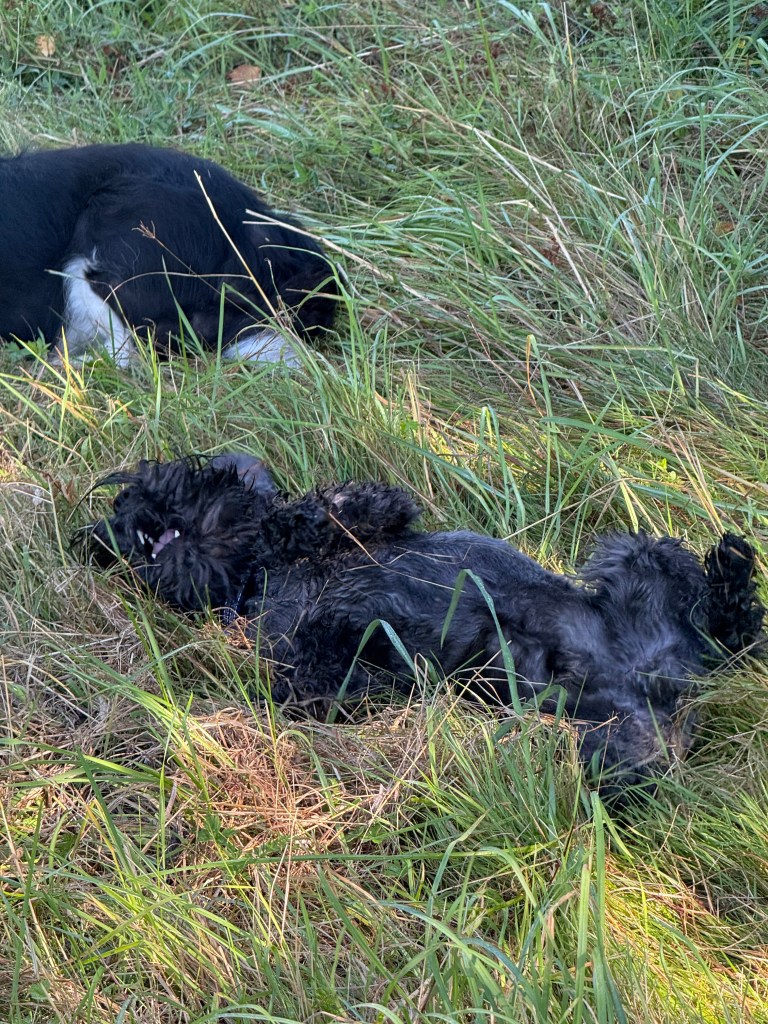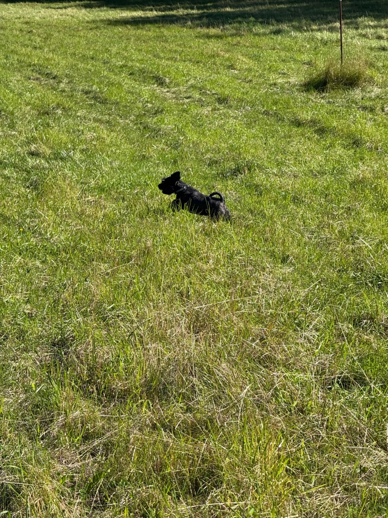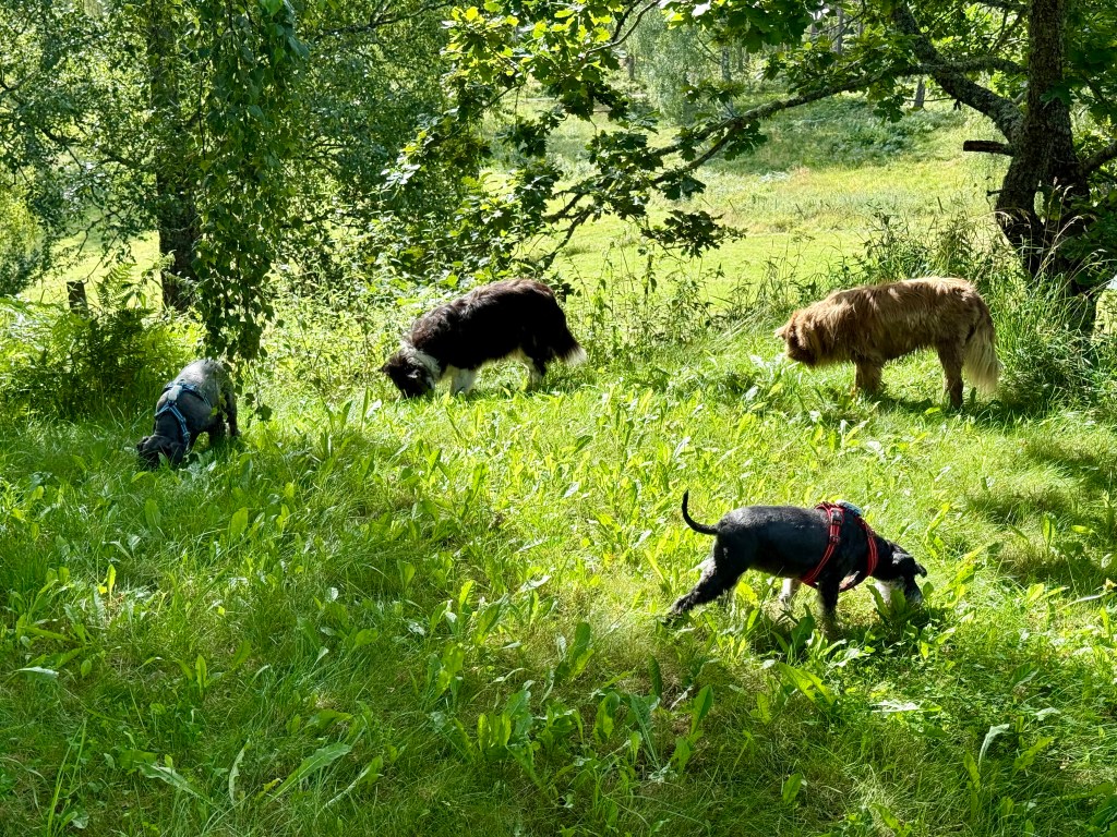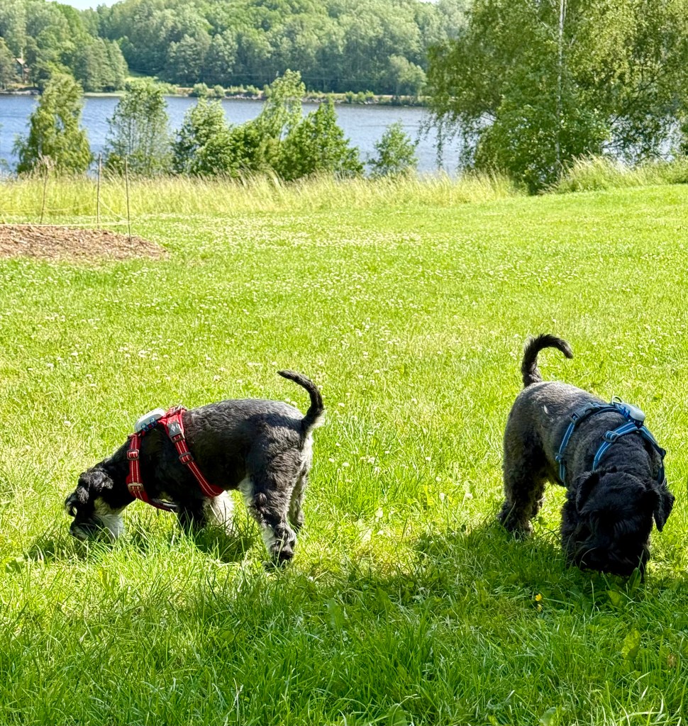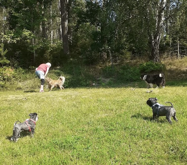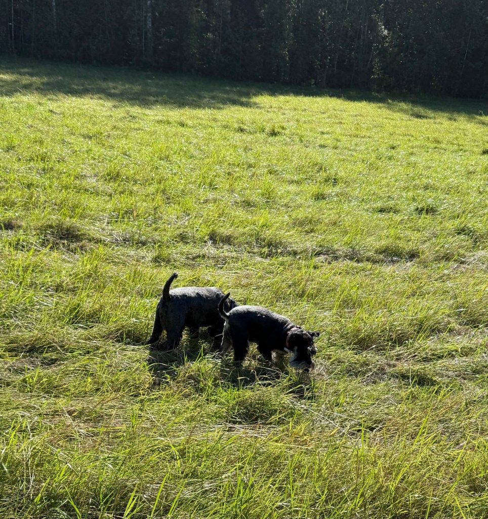 Äntligen får vi rusa på fria tassar på ängen invid skogen
