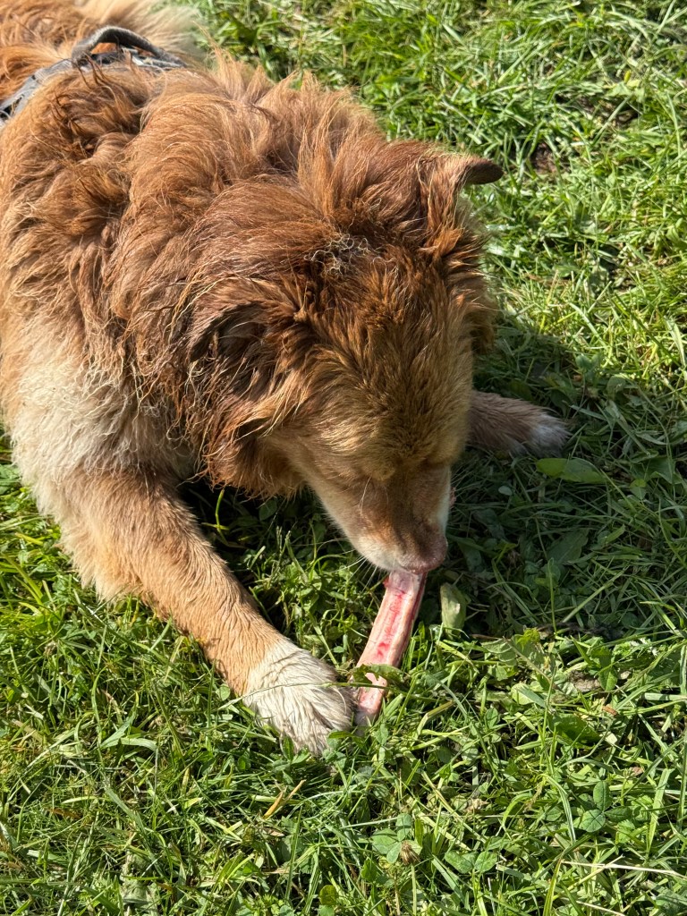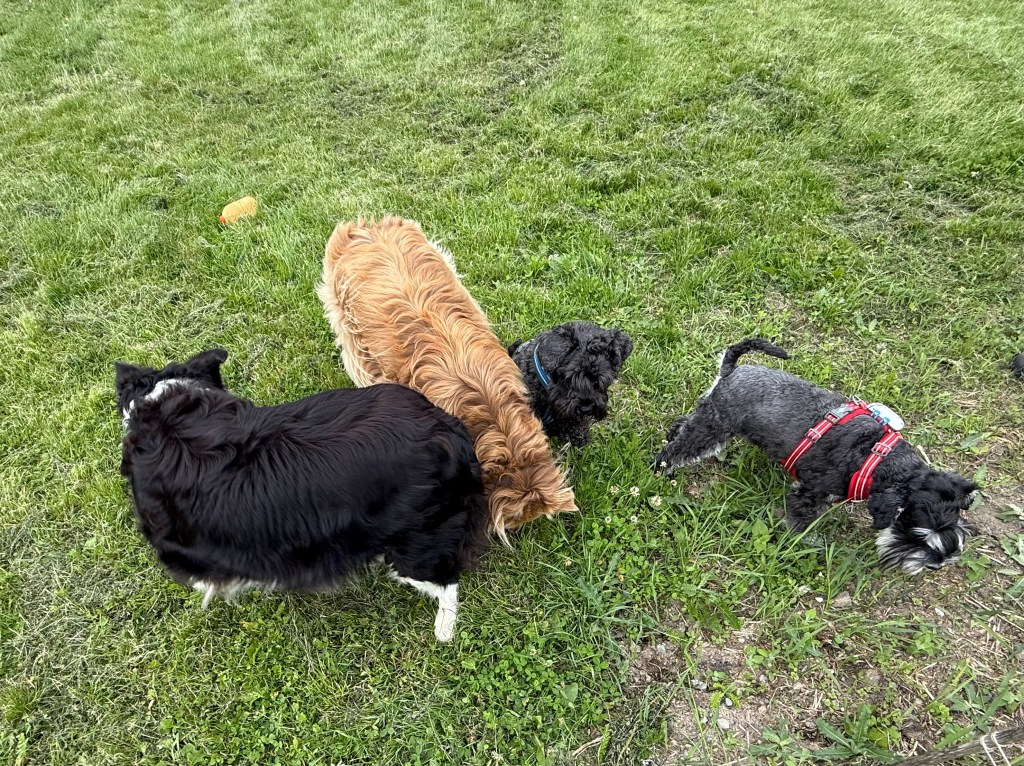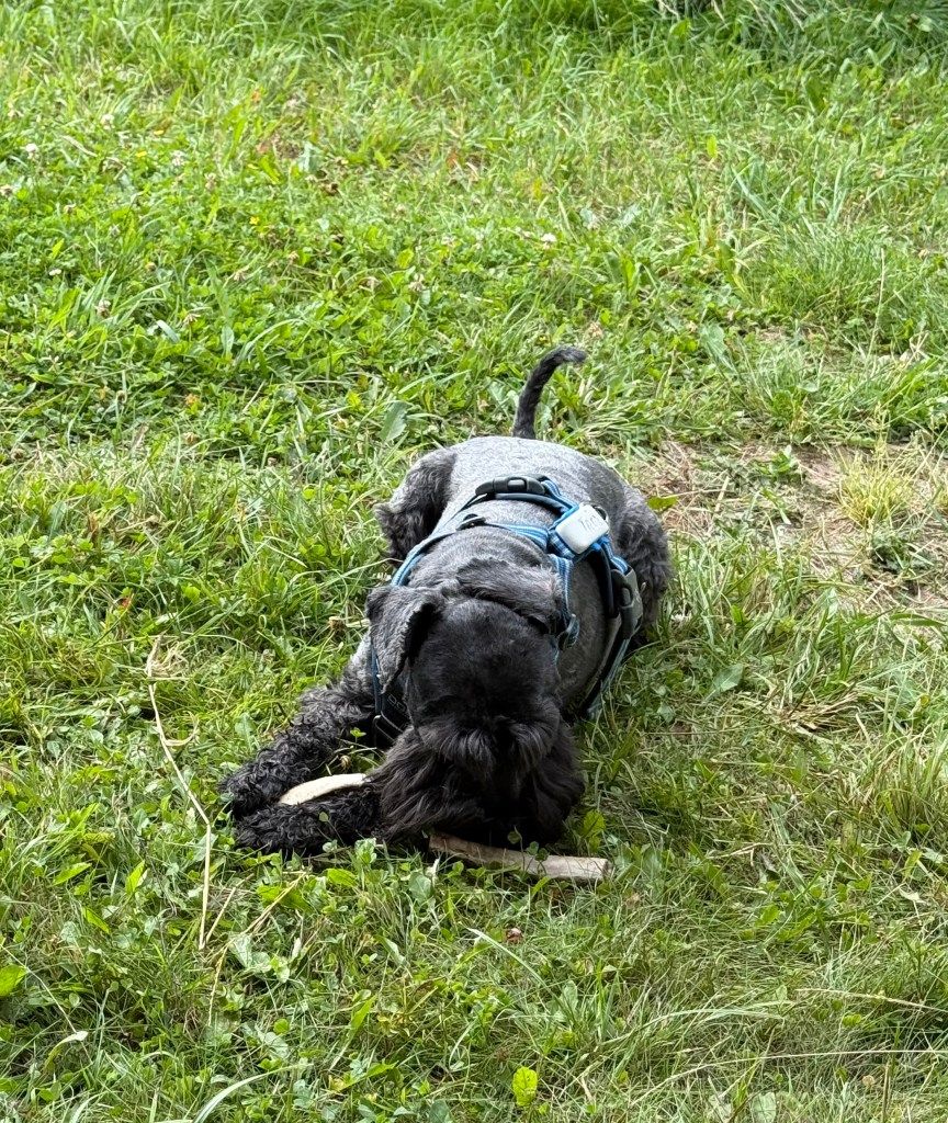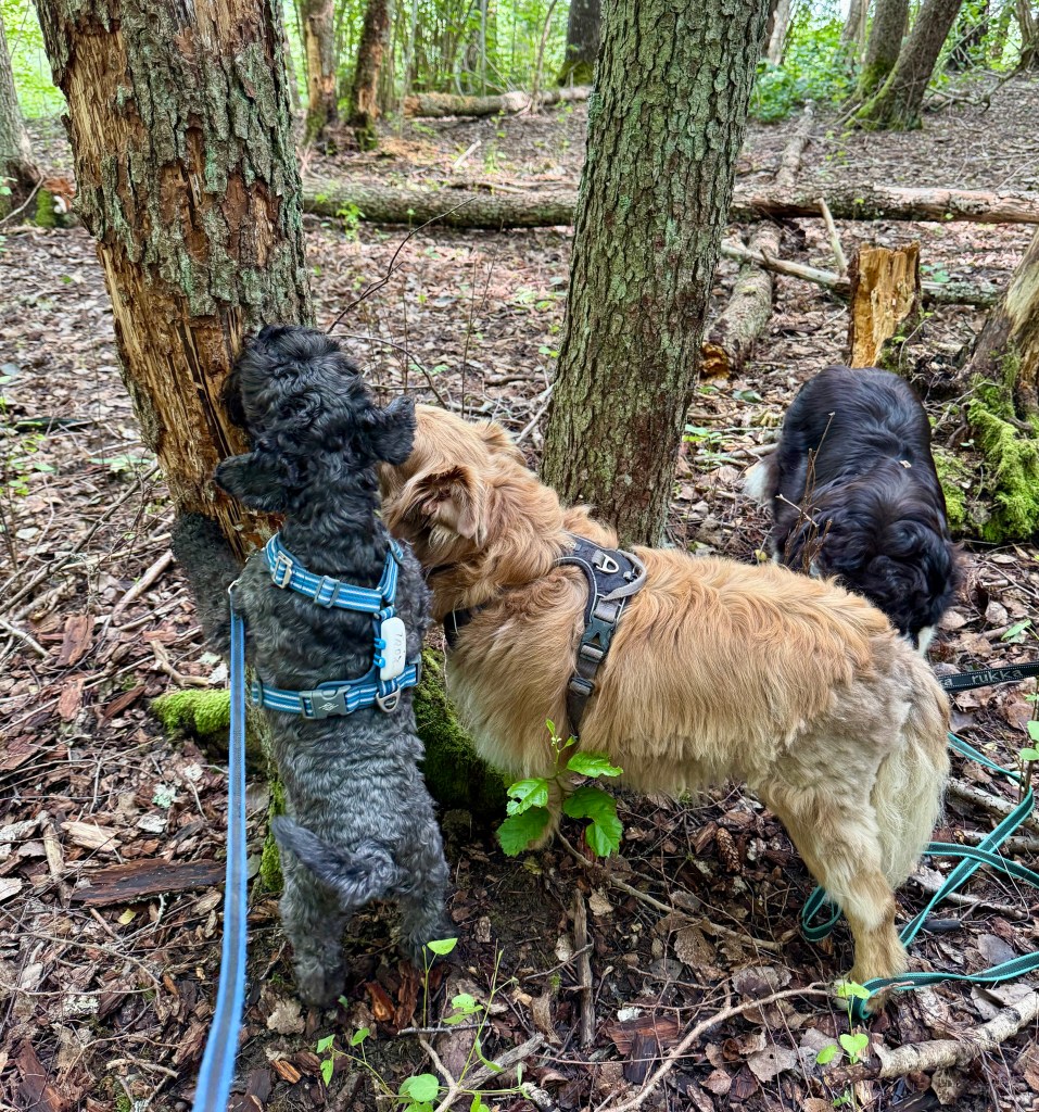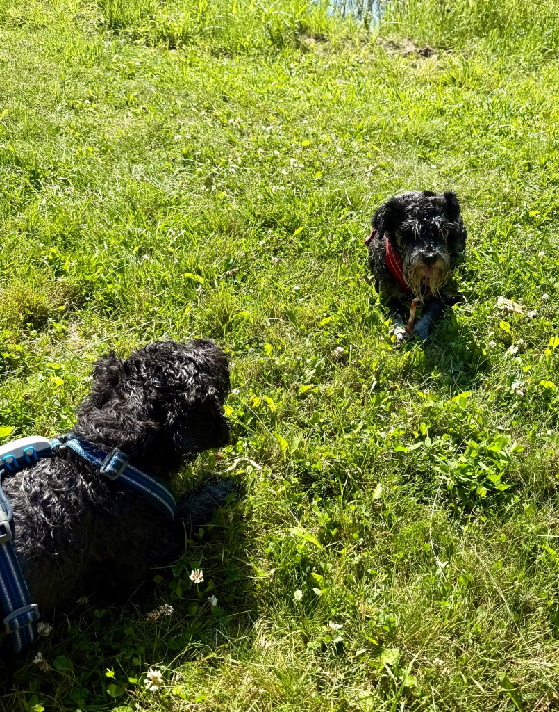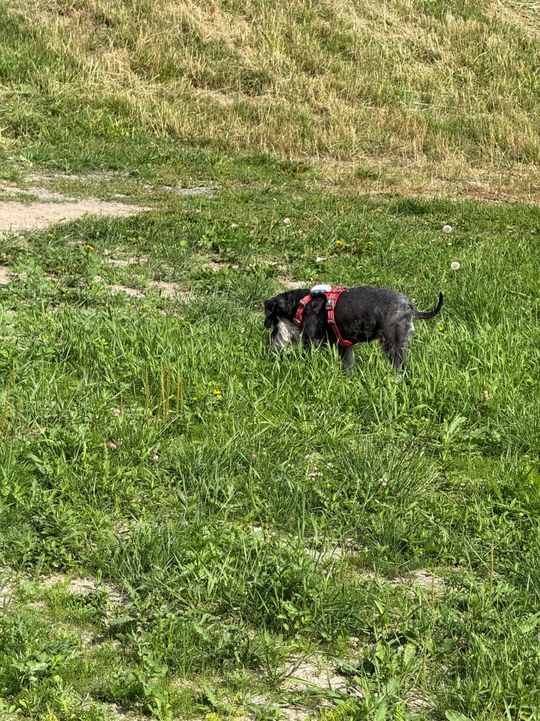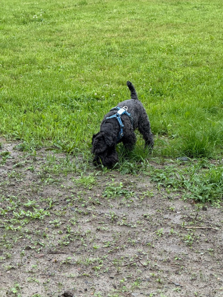 Äntligen får vi rusa på fria tassar på ängen invid skogen