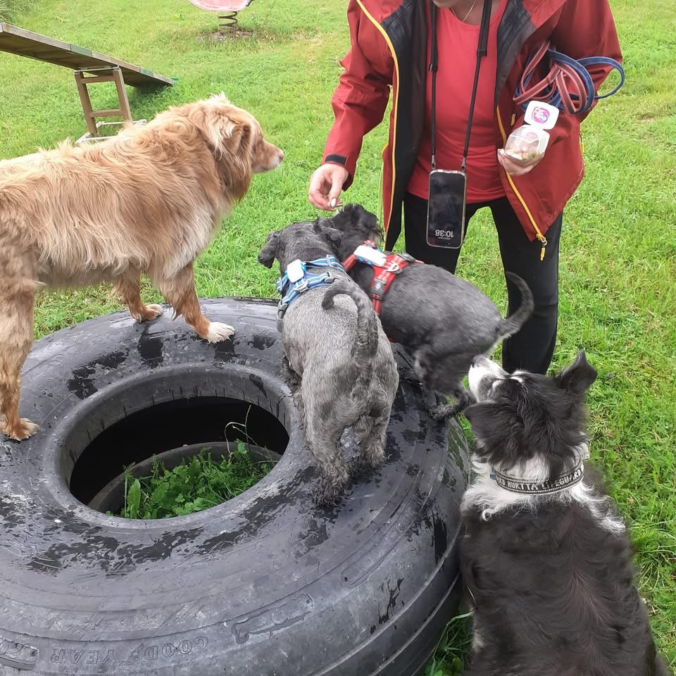 Matte övade med Troy på att han på kommandoordet skulle gå runt på däcket. Tänk att när han gjorde det så fick han godis så jag och Basse hoppade upp och tyckte att vi också skulle få godis fast vi inte gick runt. Wilma tyckte att det räckte med att sitta fint bredvid däcket.