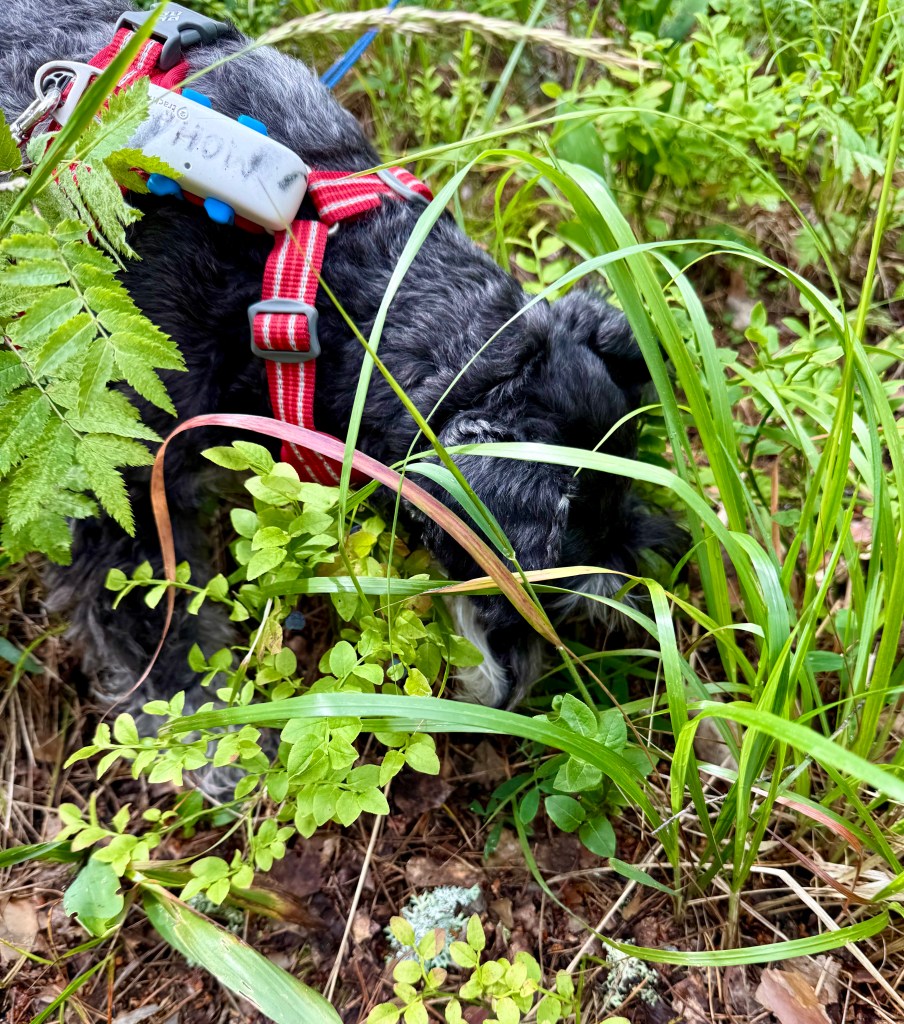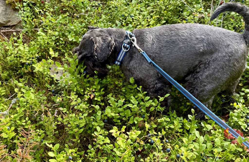 Efter att ha undersökt alla ev råttbon i stubbarna och befunnit att inga möss fanns övergick även Troy till att äta blåbär.