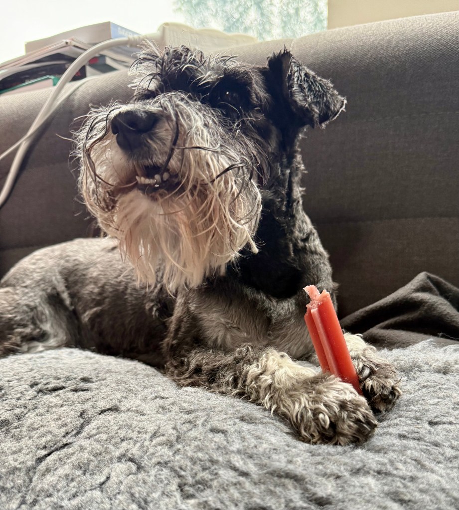 Nom nom nom sa Troy. Alla fyra låg vi och gnagde på godsakerna.