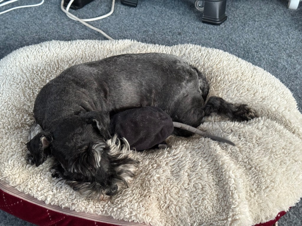 Zzzzz Råttis och jag tar en liten eftermiddags lur, svart hund och svart råtta inte lätt att se honom.