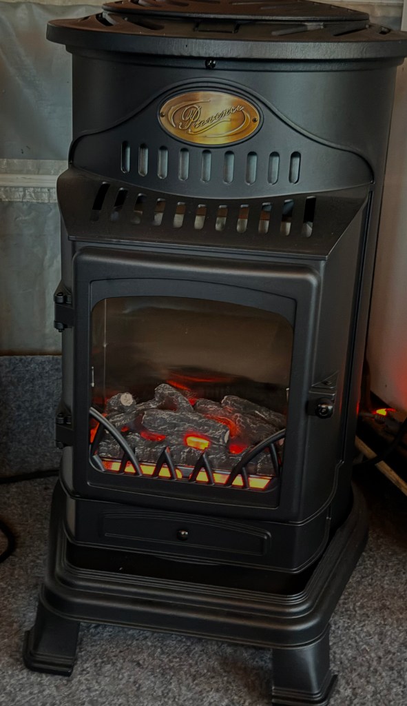 På kvällen började det mörkna och bli lite svalt, det är en typisk augusti kväll. Vi startar gasolkaminen på lägsta läget och det blir precis lagom varmt i förtältet.
