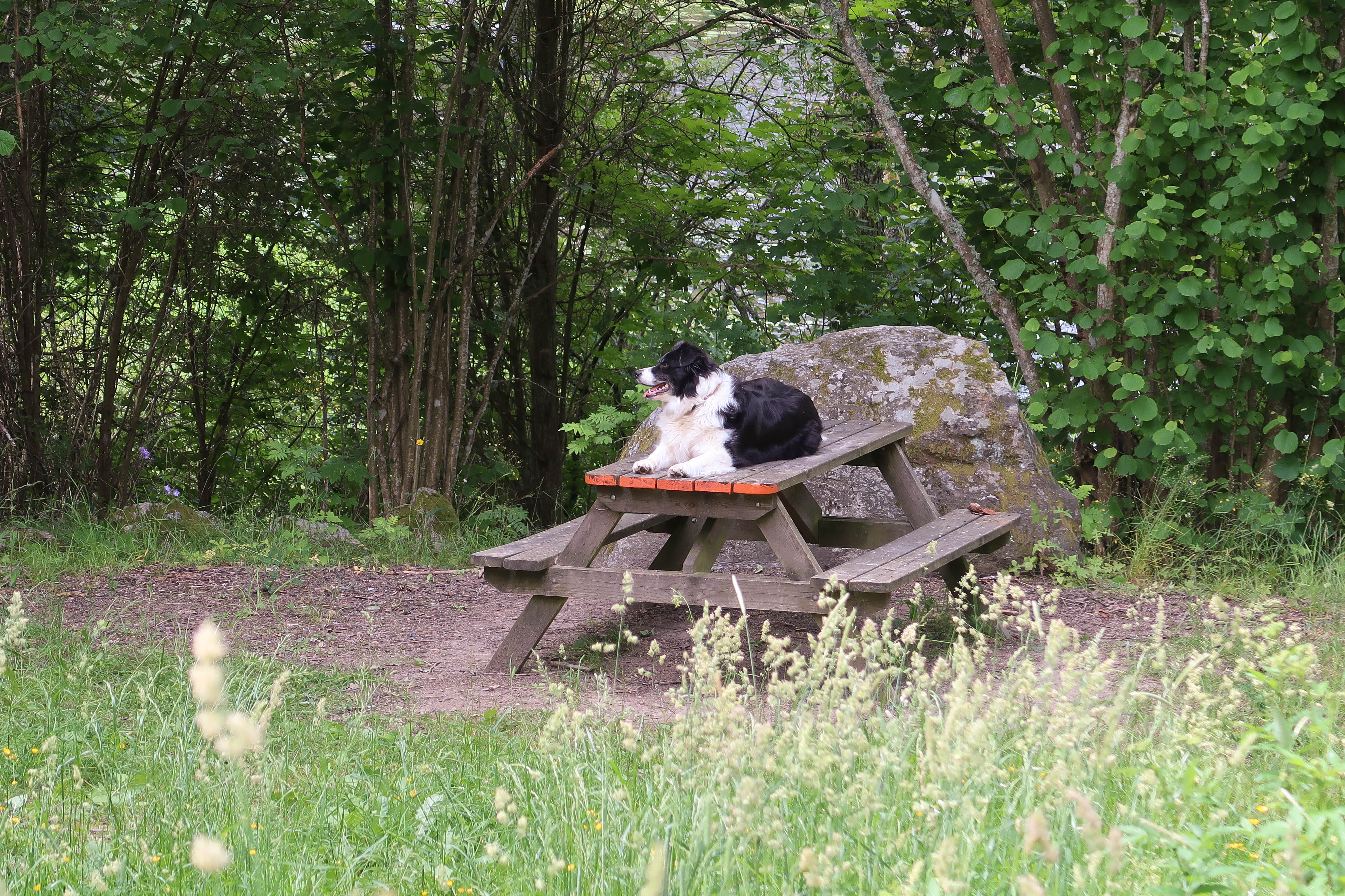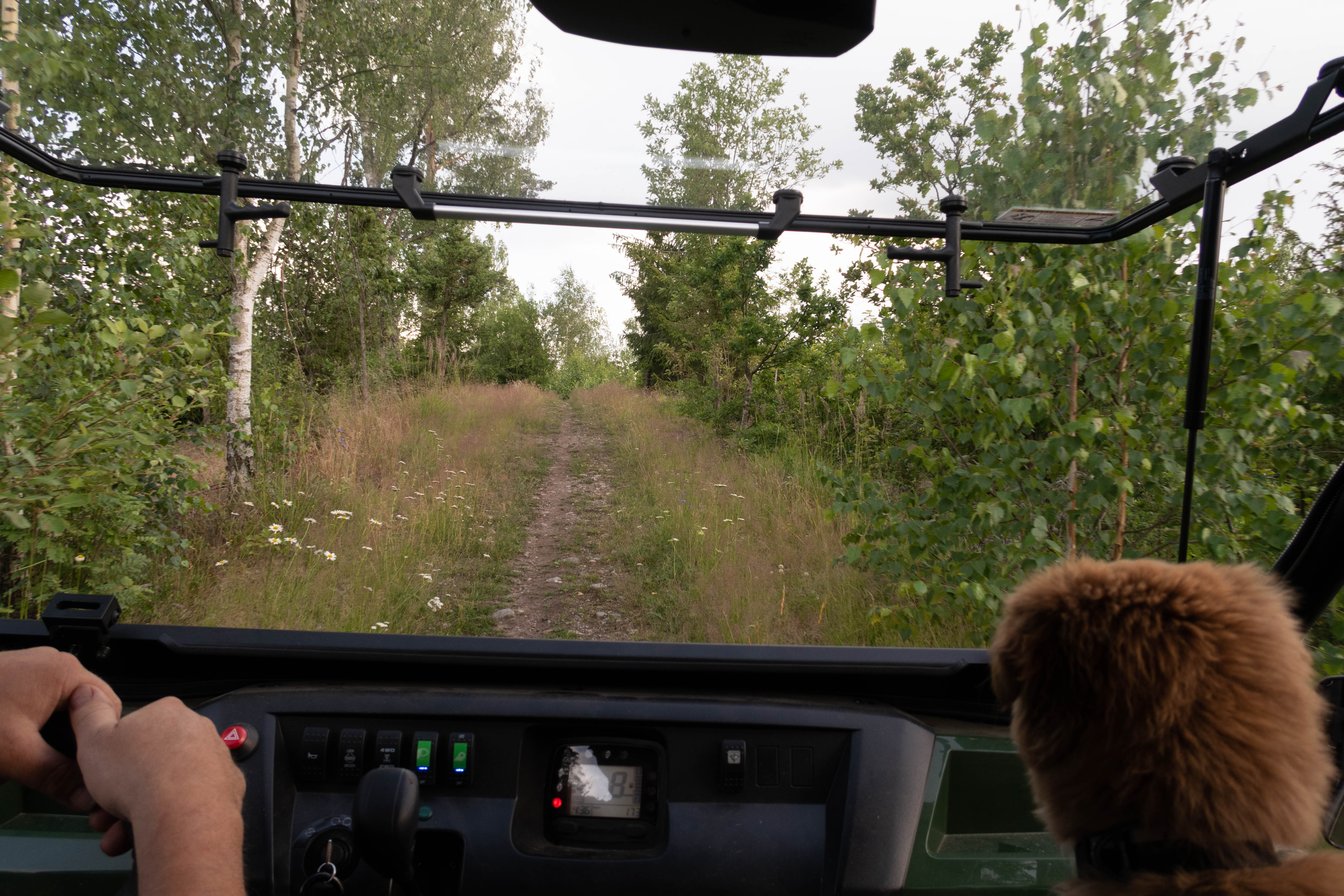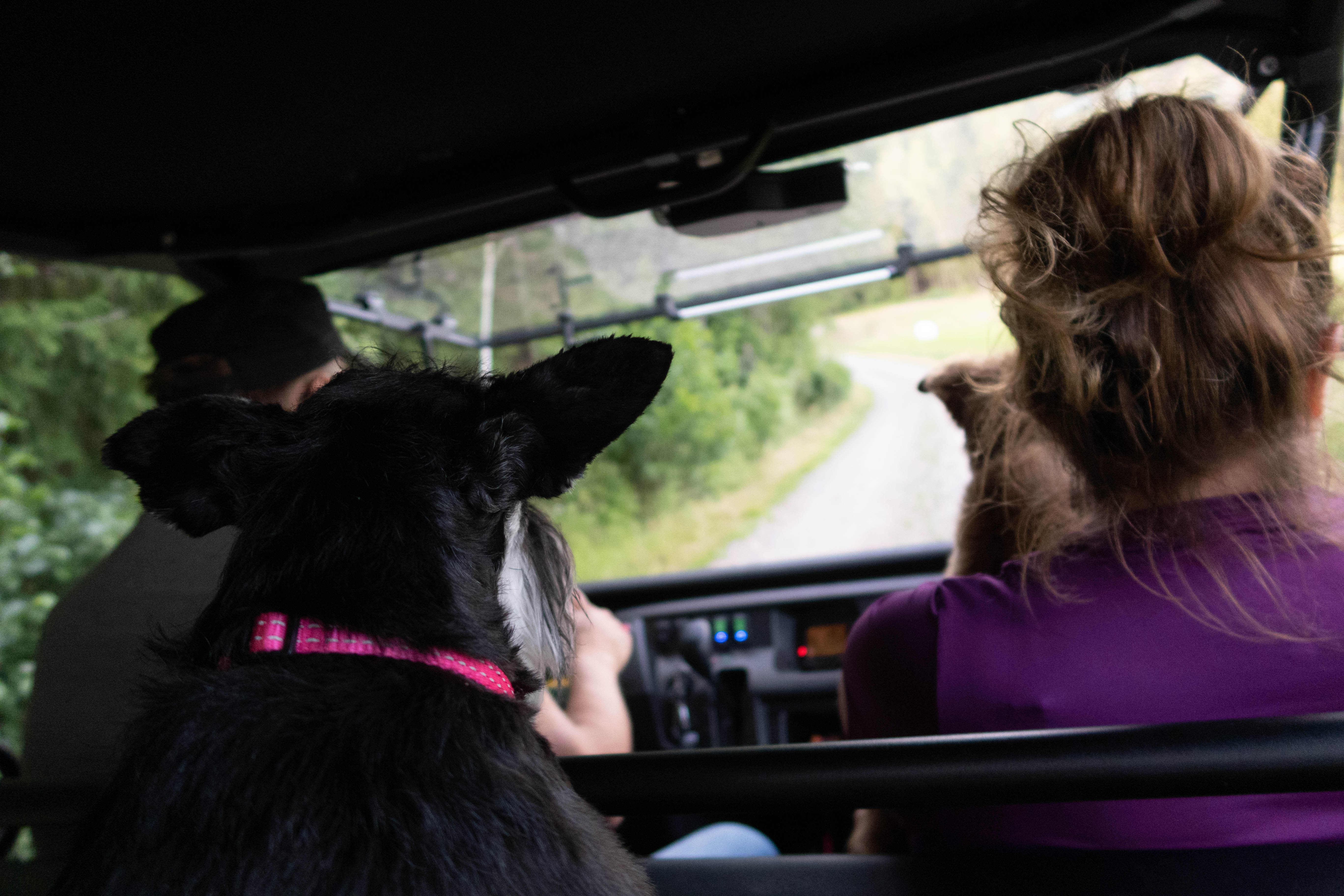 Det blev dags för en provtur med Tommys nya mula. Ut i skogen på små vägar. Basse och Ann satt i fram medans matte och jag hade hela baksätet för oss själva. Jag hade noga koll på hur Tommy körde och snackade lite med Basse under resan.