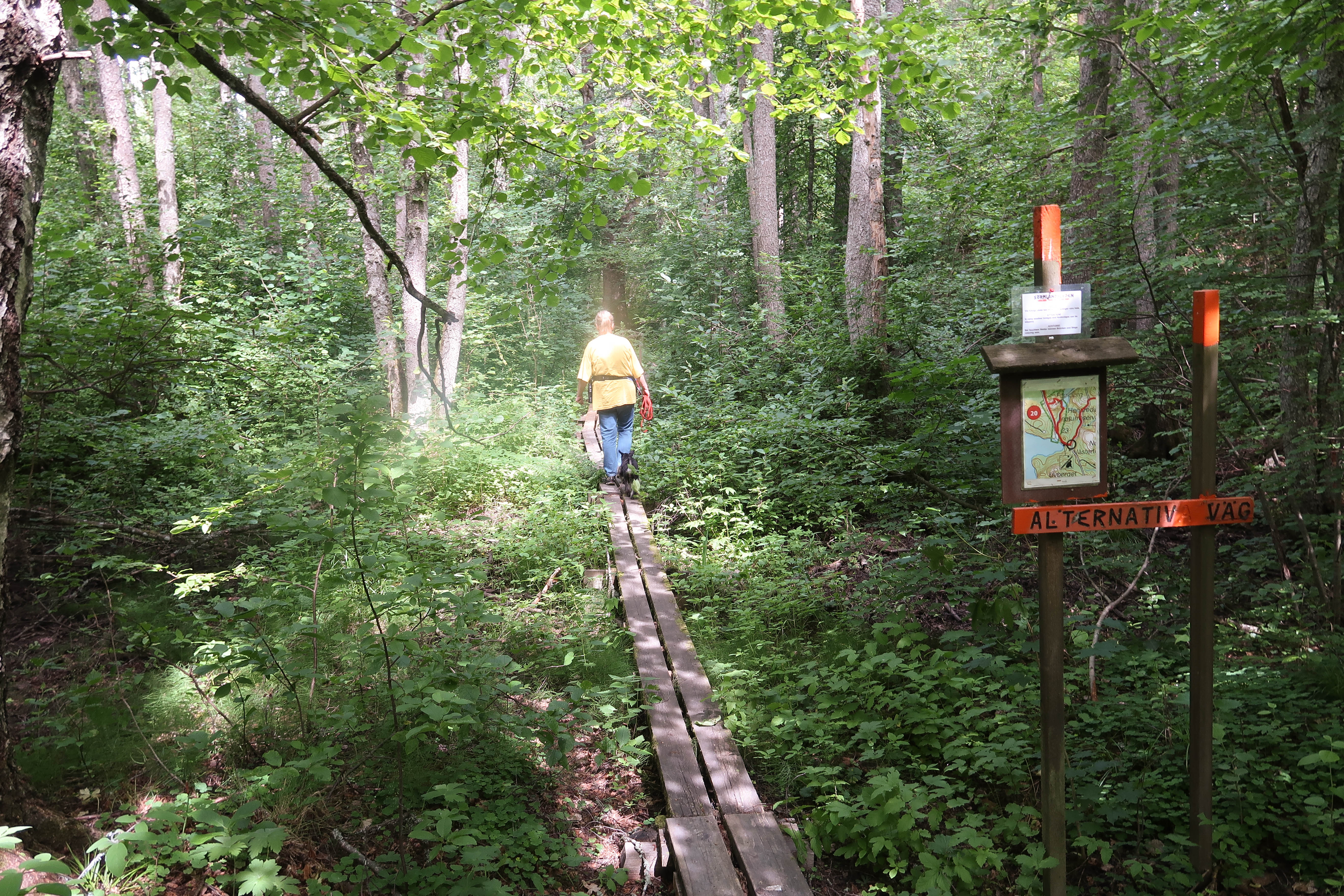 På ett ställe fanns en skylt som visade att det fanns en minnessten men inte vad för sten. Vi gick ni bland sly och gamla fallna träd och cirka 50 m från stigen hittade vi stenarna som scouterna rest. Den andra ena till minne av Ivar Wall och den andra restes 1922 för Emil Winqvist.