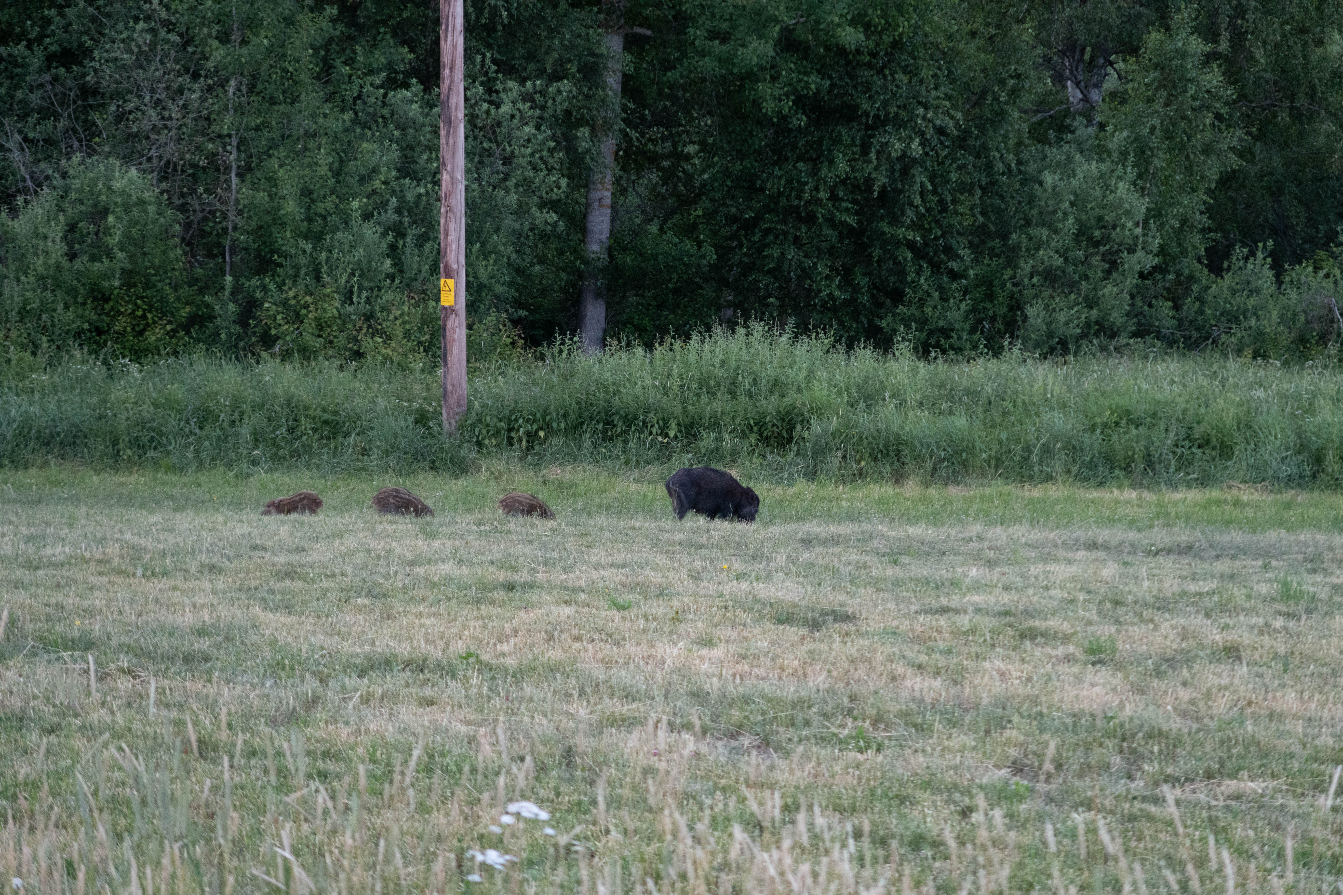 Vi såg många vilda djur på turen vildsvin, hjortar och en ko med kalv. Tommy visste vems kon var och ringde till honom. Han sa att det var en ko som rymt från ett hägn och därefter hade hon fått kalven i skogen. Hon hette 106 och de hade försökt fånga in henne men misslyckats