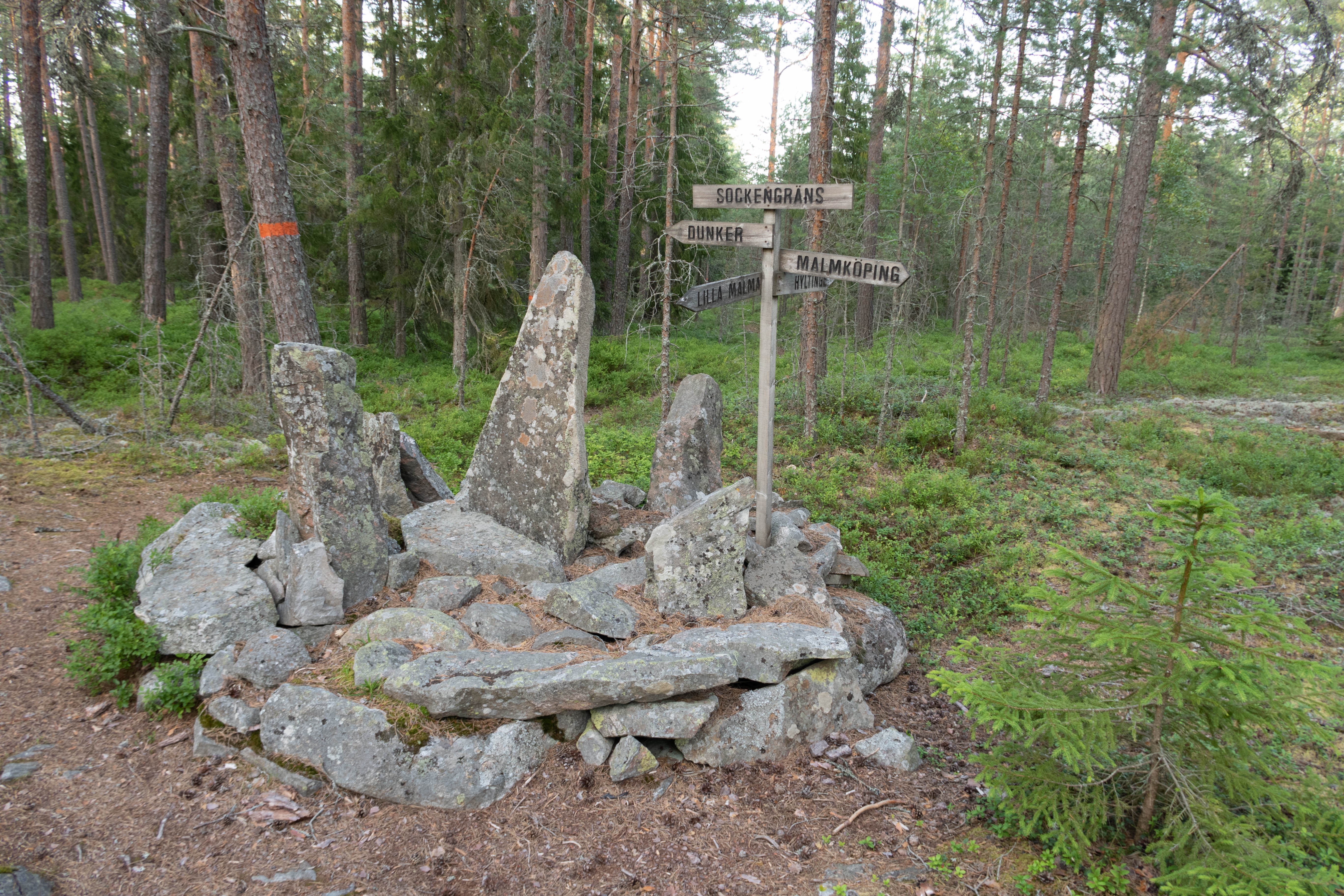 På et ställe fans ett stenröse som visade flera sockengränser. Det var mitt i skogen och vi komma dit genom att köra på vägar som var till för skogsmaskiner. Tommy hittar otroligt bra i trakten