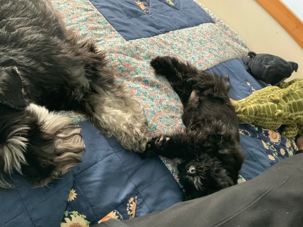 Han har inte så mycket ork så det blir ofta lite stunder då vi slöar lite.