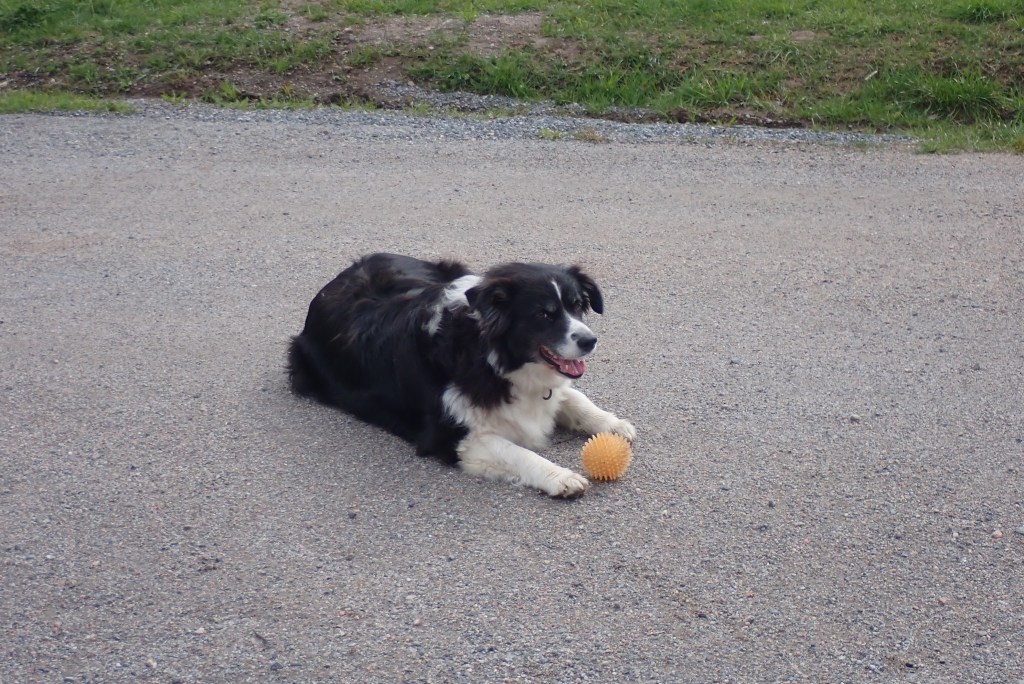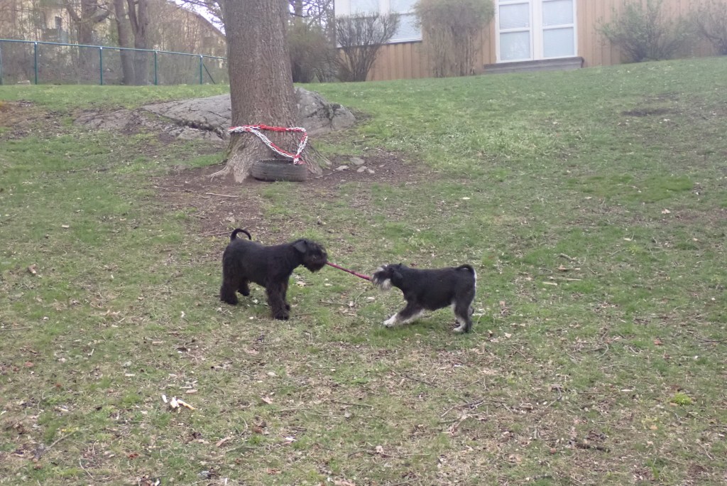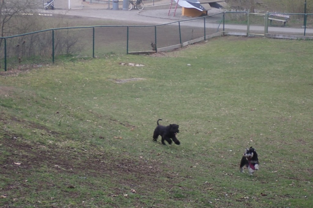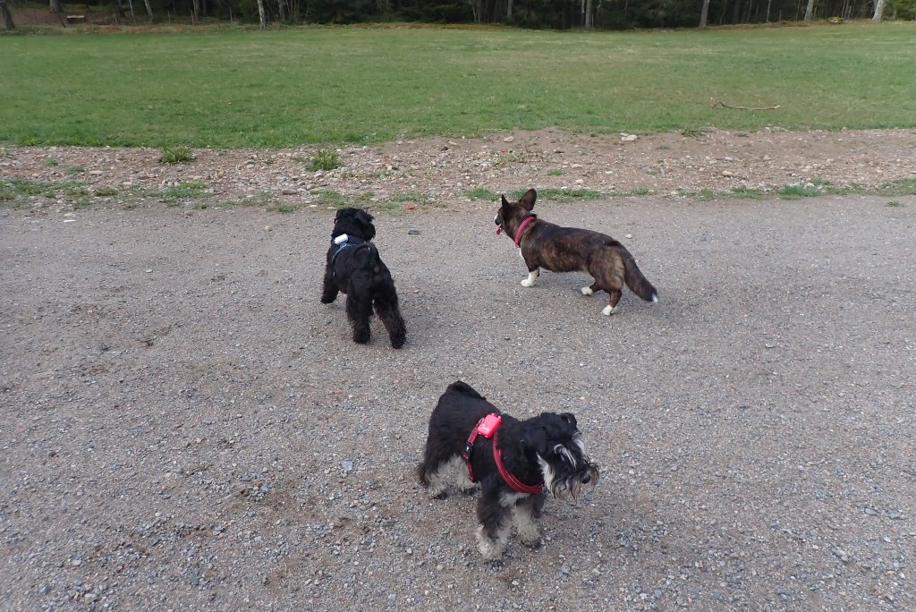 En vanlig kvällsrunda. Det bästa vi vet är när vi går till hagen. Där får vi kuta av oss lite energi. Troy har vuxit till sig och han håller jämna steg med mig.