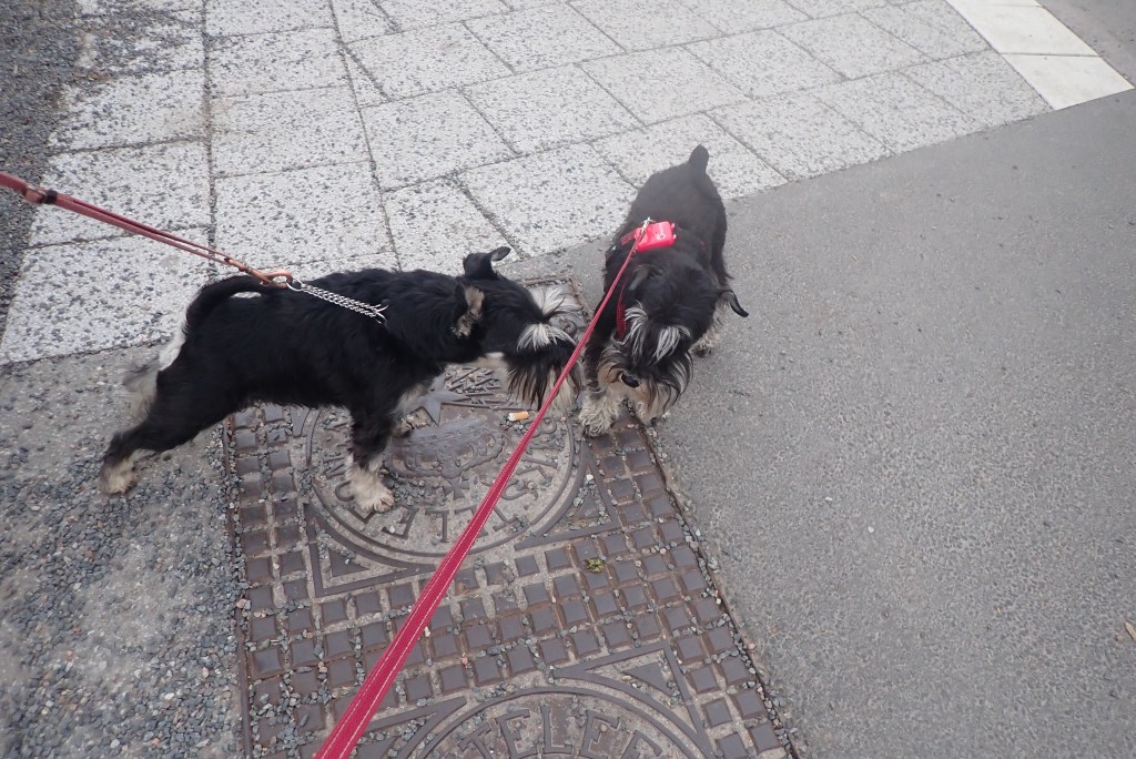 Vi träffade en snygg kille som heter Buster en herre på 6 år, en kille i sina bästa år. Han var väldigt intresserad av mig och jag hälsade artigt på honom. Mattarna pratade lite om oss och vilka andra dvärgschnauzrar som bor i trakterna.