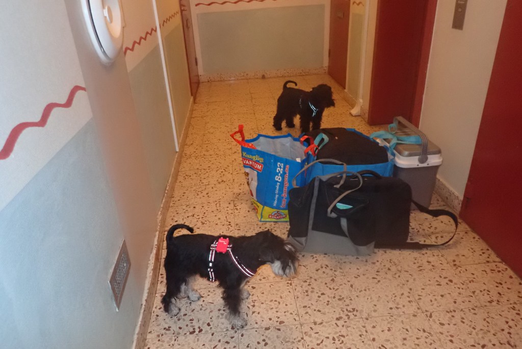 Här pågår något! Det packas i kassar och det brukar betyda att vi skall åka till husvagnen.