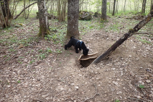 Troy var väldigt intresserad av ett övergivet grävlingsgryt! Det fanns många olika ingångar till grytet.