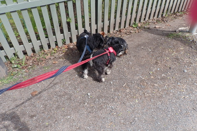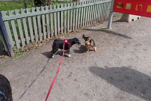 Det var inte samma kille här idag och de här verkade inte lika givmilda. Troy försökte nå bollen under staketet, staket är ett otyg i våra ögon! Men det gick inte den låg för långt in så vi fick gå vidare utan bollar!