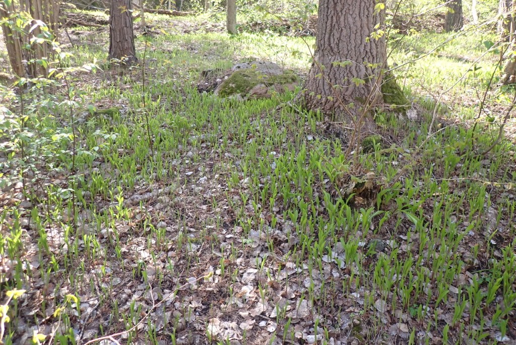 Vi njuter av en förmiddagspromenad och i skogen är liljekonvaljerna på G.