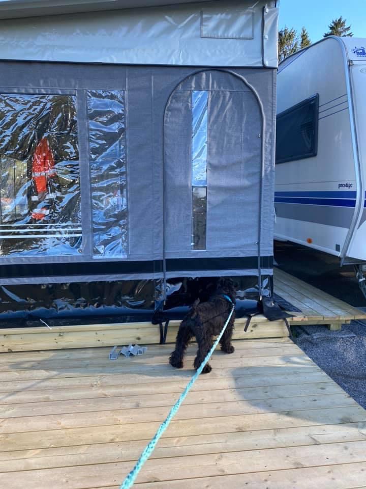 Efter tre timmar i skogen var vi hemma vid vagnen. Jag behövde inte duscha ben och mage eftersom jag inte smutsar ned mig. Men för somliga som inte luktar hallontårta är det nödvändigt eftersom vi skall umgås på liten yta.