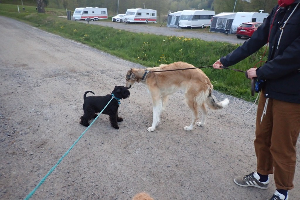Troy gillar långbenta brudar och när han nu träffade Myra gick han i trans. Myra är av rasen Borzoi och hon är en mycket vänlig tjej som älskar att springa först. Det får vänta tills vi ses på hundträffen för nu var vi koppelfångar.