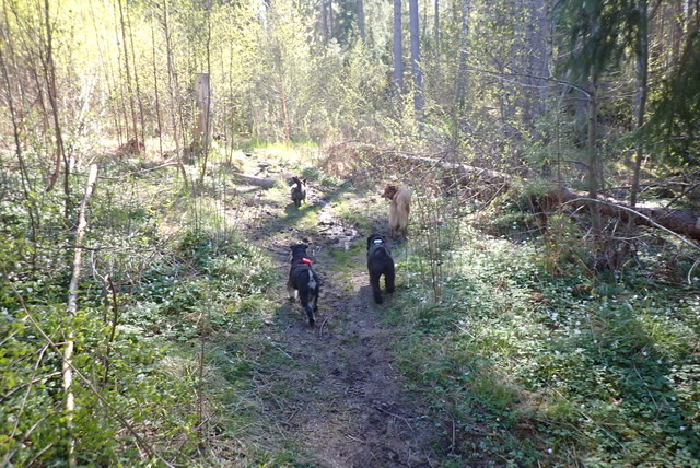 Nu skulle vi vidare. Vi hängde på Helena som hittar så bra stigar. Annat än mattes snåriga genvägar.