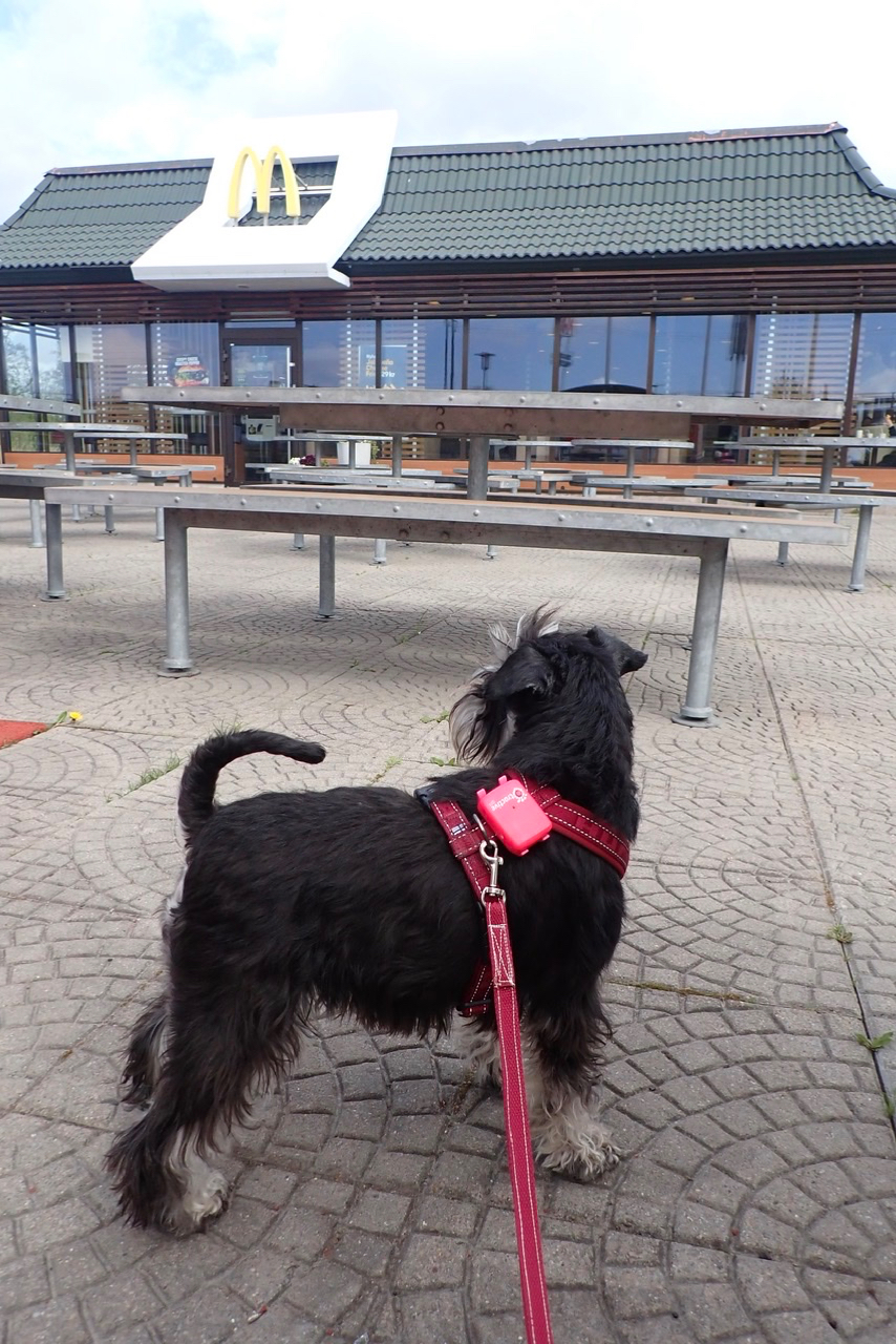 Husse gick in där i det huset med ett stort M på taket och det brukar betyda att vi får smaka på Mattes kycklingnuggets! Sen skall vi handla på Granngården där har de grisknorrar och grisöron. Det är mycket gott så jag måste se till att matte köper mycket av dem, för tilldelningen är väldigt snål.
