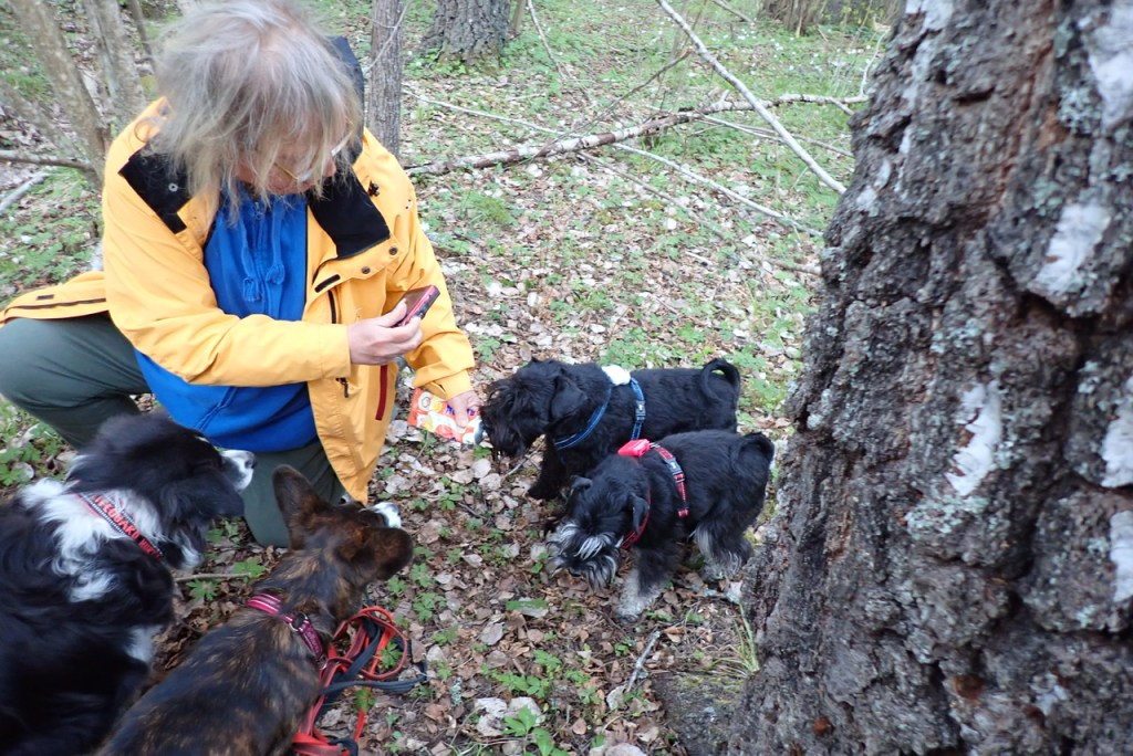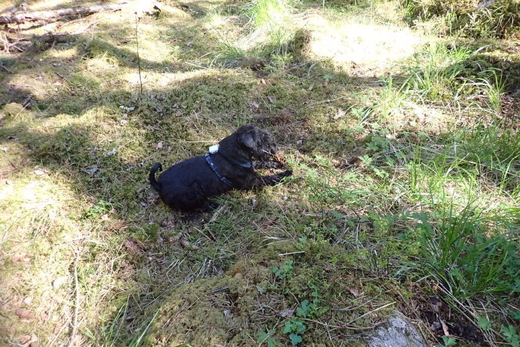 Nu hade vi lite skola och kollade in små embryon till kantareller som Helena krafsat fram efter att Wilma visat på var de fans. Alla studerar noga vad Helena visar, för vi vill veta vad det var hon letade efter så att vi kan få mer mjukost, mmmm smaskens.