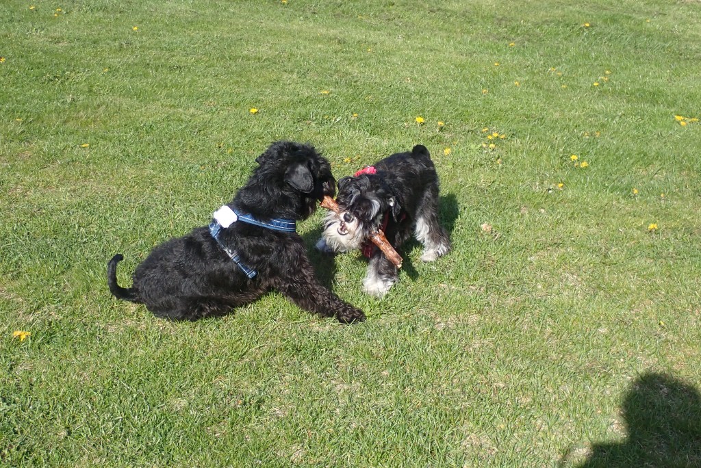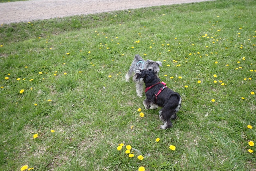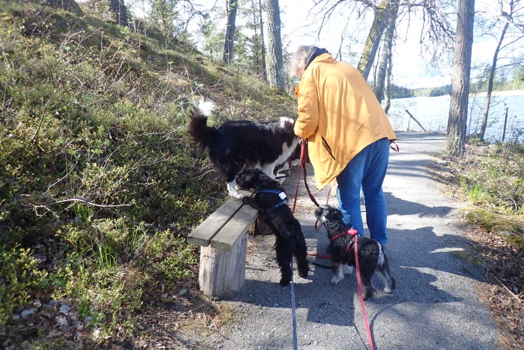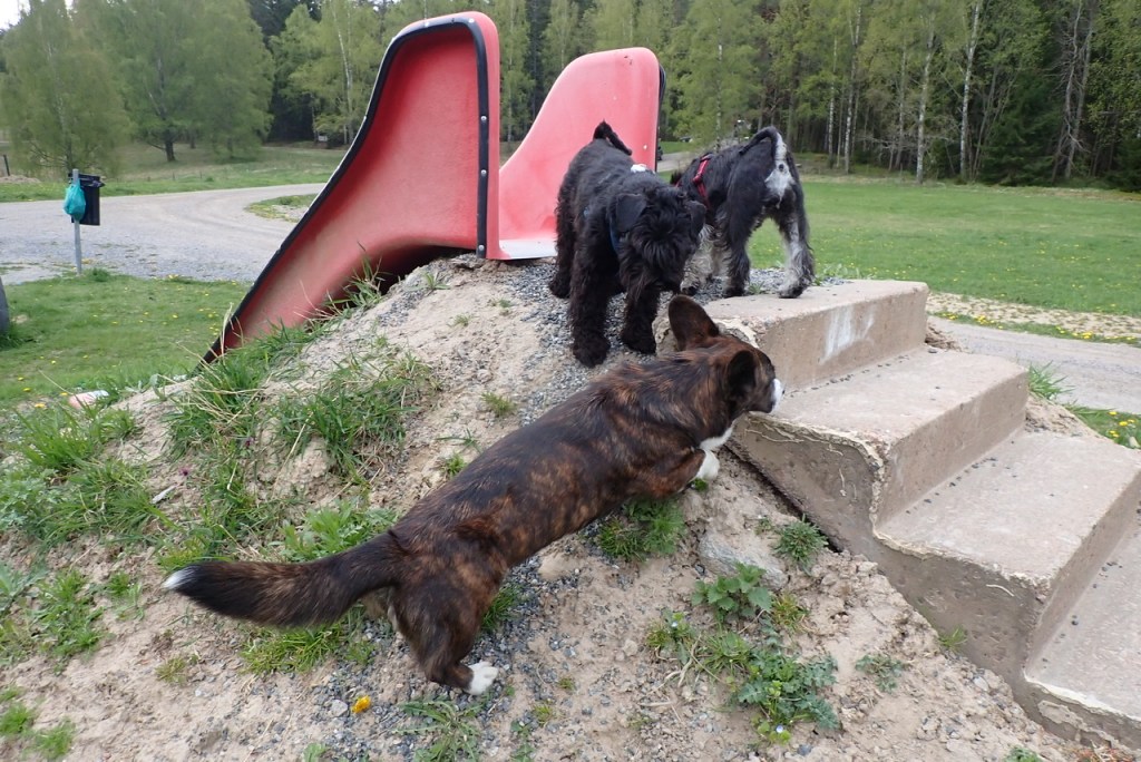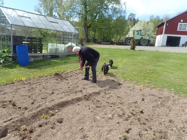 Lördag och då är det hundträff. Matte och Helena samt Jennas matte Filippa har fått lite odlingsutrymme av Tommy och vi övervakade när det förbereddes för potatisfåror. Det är viktigt att det blir rätt. De skall vara en hand djupa och sen skall det vara en fot (storlek 42) mellan sättpotatisarna. Det är lite för kallt i jorden fortfarande så vi väntar en vecka med att sätta potatisen. Nu måste värmen komma så vi kan vara på trallen utanför vagnen.
