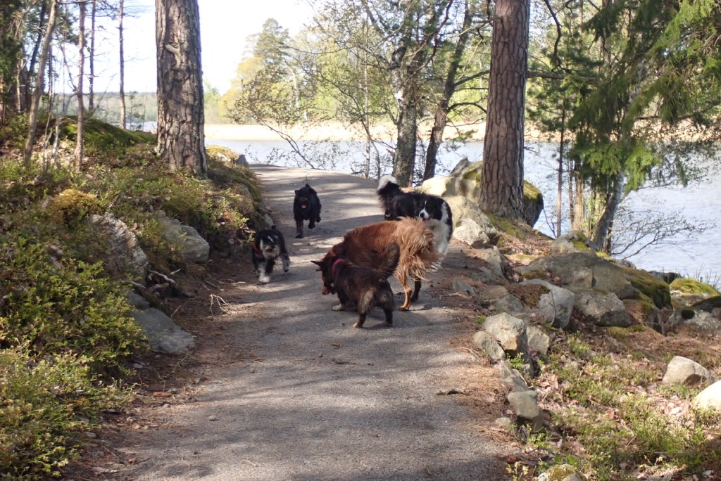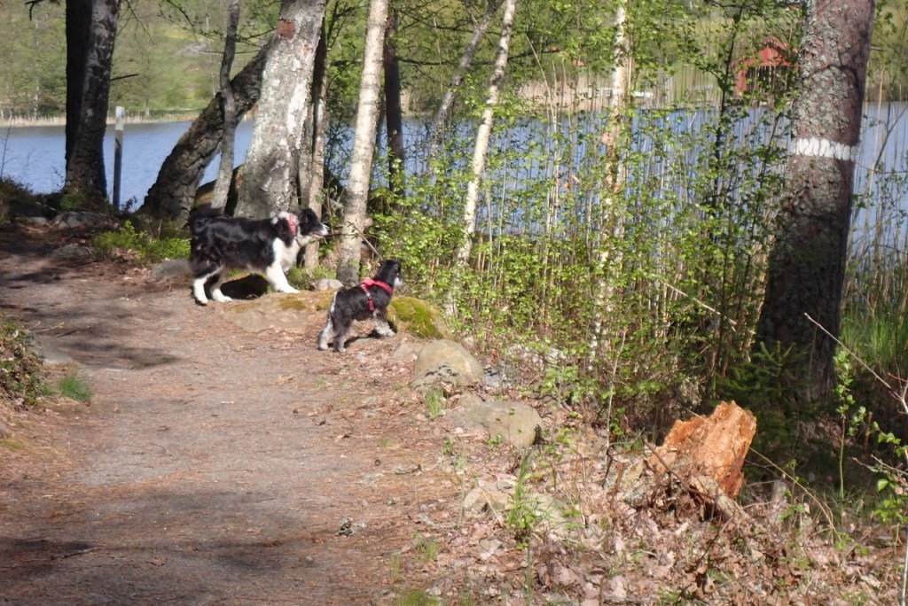 Badgalningar! Jag och Wilma höll oss på stigen och höll noga koll på Jenna och Basse som naturligtvis badade. Troy var med ner till vattnet och det var nära att också skulle hoppa i.