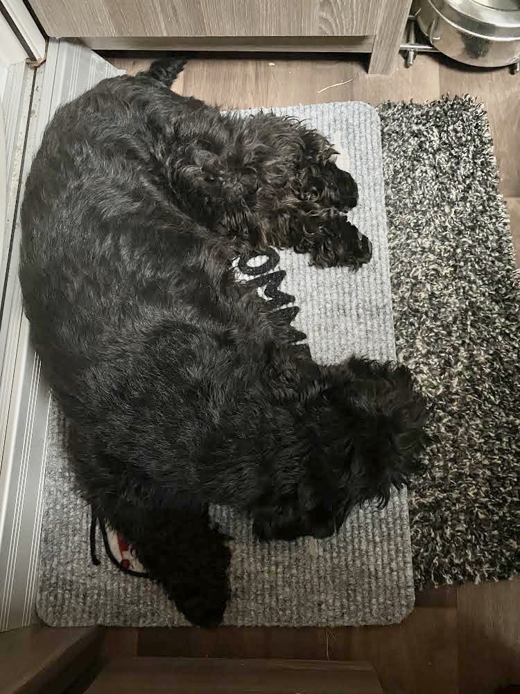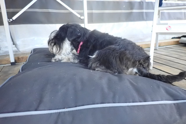 Vi la oss på varsin kylmatta och njöt glada över att vi inte behövde måla något. Troy duckade in totalt på kylmattan, det var första gången som han provade en kylmatta och den gillade han skarpt.