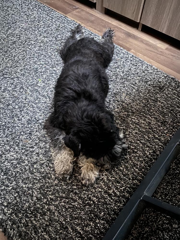 Troy hittade något spännande i en buske. Han var väldigt bestämd att ingen skulle få se vad det var eller ta det ifrån honom. En allmän jakt efter honom påbörjades men han lyckades hålla sig undan från de väldigt intresserade hundarna. Han var extra noga med att vara utom räckhåll från matte för hon tar alltid sådant. M trodde att det kanske var en död fågel eller möjligen en död råtta.