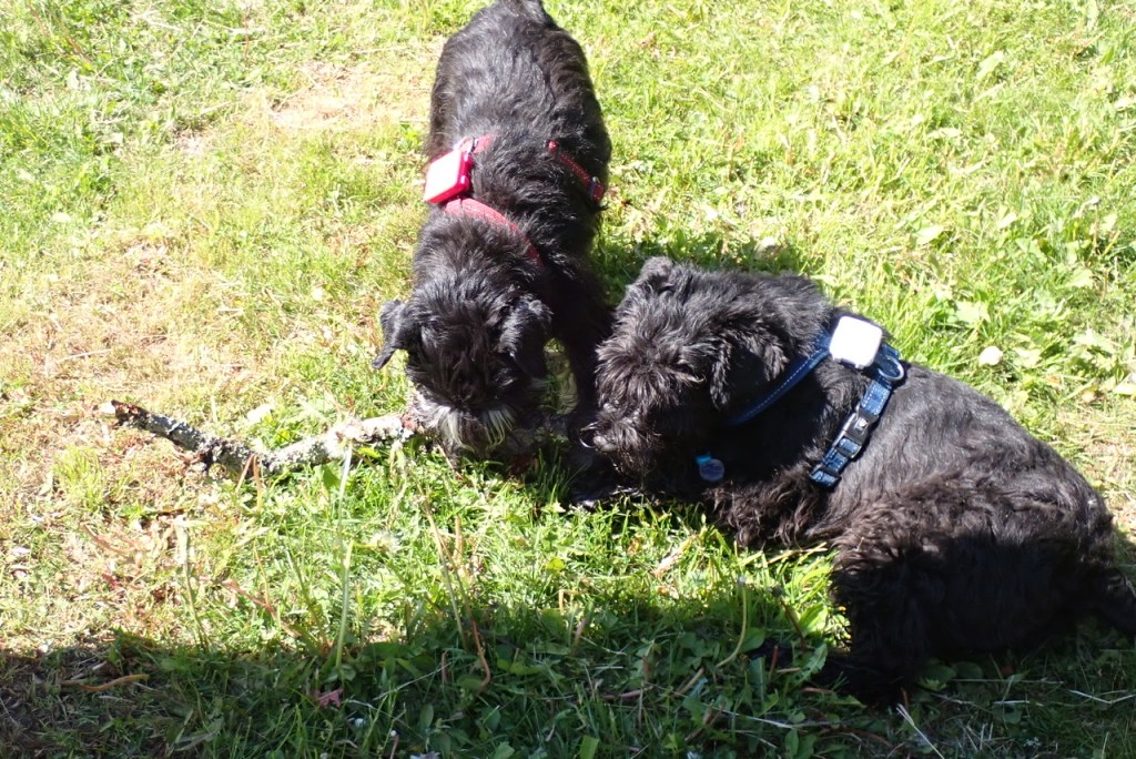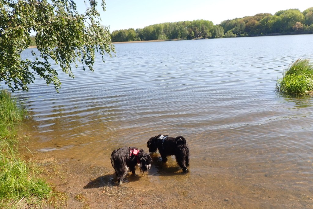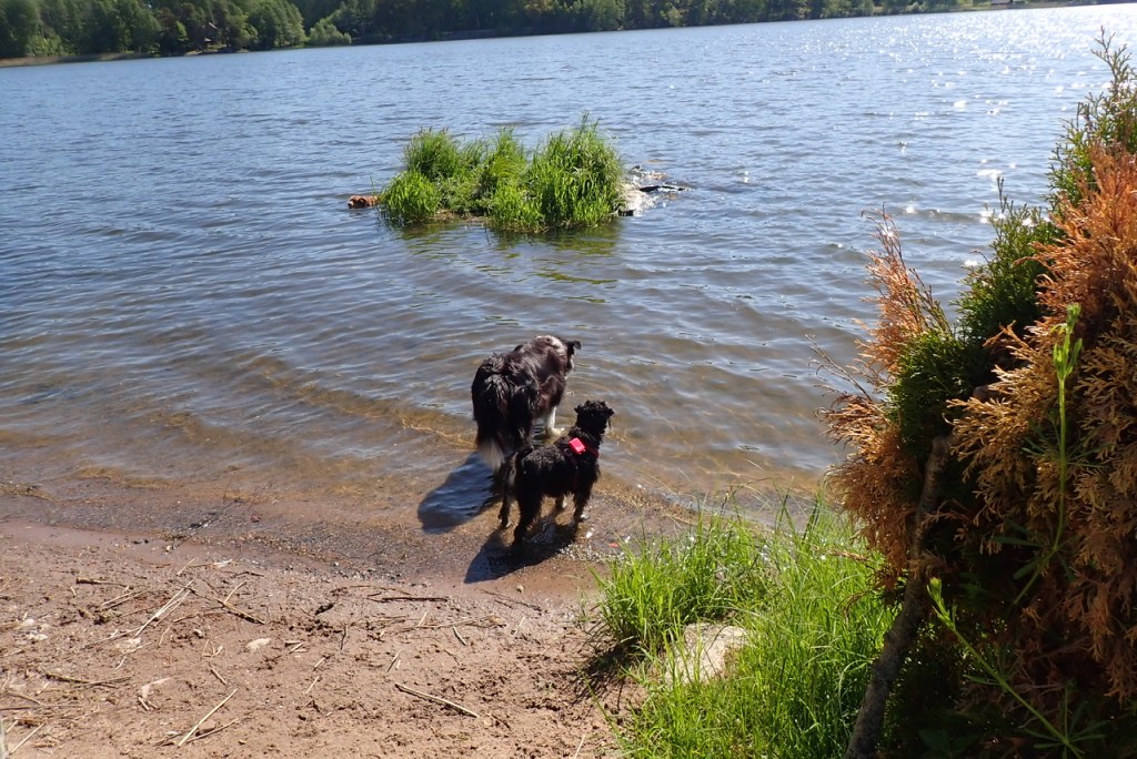 Måndag och vi gick åter till Klovsten där vi träffade järngänget! Det var väldigt varmt så vi tog det lugnt med bara korta rusher och sen mycket plask i strandkanten. Jag hittade en rutten gren i vattenbrynet som jag grävde upp. Den var stor nog att räcka till fler och väldigt god att tugga på.