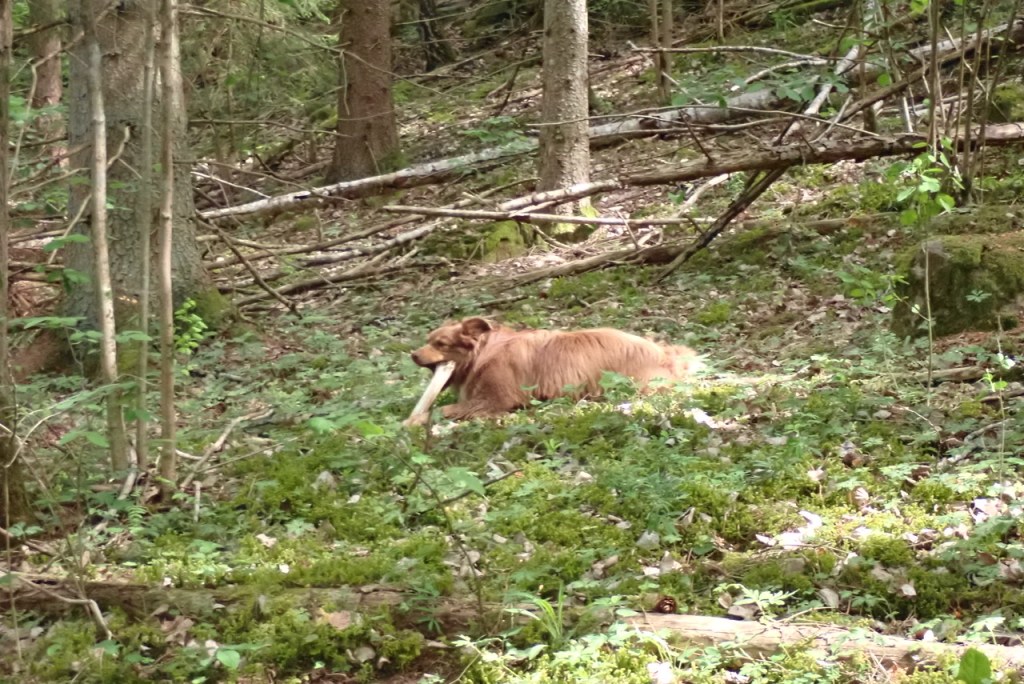 Basse är en rackare på att spåra upp ben i naturen. Han hittade ett stort som såg ut att vara ett lårben från något större djur. Det var inte så gnagbart så vi lämnade det åt sitt öde. Kanske blir det smaskigare om det får ligga till sig lite.