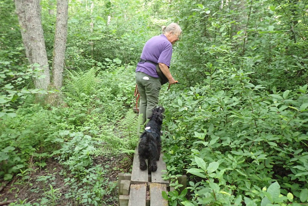 Bron över bäcken var lika läskig som förra veckan. Wilma tycker att de andra är löjliga. Hon hade gått lite i förväg och la sig att vänta på oss.
