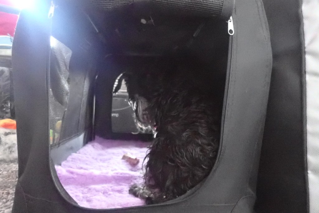 Vi alla sov som stockar hela natten. När det regnar och plaskar på taket på husvagnen blir man väldigt lugn och trött. Vi sov faktiskt över hundträffen och gick på egen skogspromenad.
