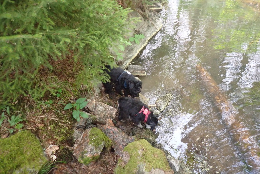 Vi tog en liten paus vid bron och då vi passade på att dricka lite bäckvatten. Det strömmar lite där så det är kallt och gott. Efter att vi druckit färdigt skulle Troy prompt i och trampa runt i leran.