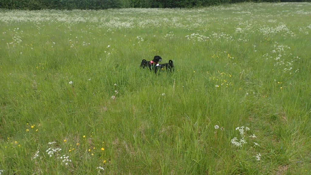 Svårt att se i det höga gräset men väldigt kul att springa runt i. Man kan gräva lite också.