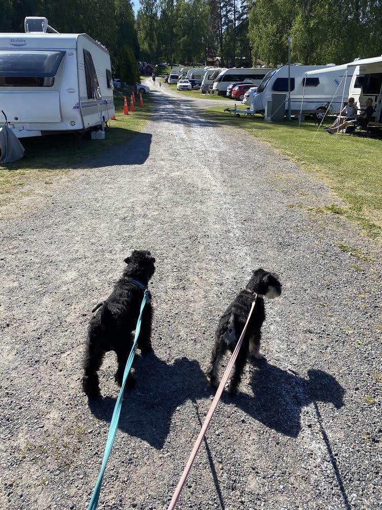 Efter en sväng hem till stan för att för första gången på tre månade fick vi hälsa på farmor. Efter en varm natt hemma är vi tillbaka igen. Det är fullt på campingen så vi går en runda för att kolla av vilka som är här. Vi missade dagens hundträff på Klovsten med M har lovat att vi skall dit i morgon.