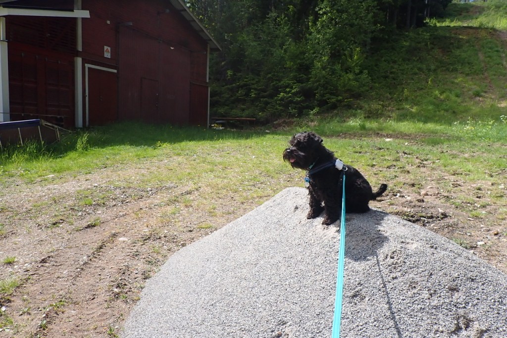 Träffen är slut och vi gick vidare. Troyen måste upp på allt och nu hittade han en grushög och då skall det naturligtvis kosta godis!