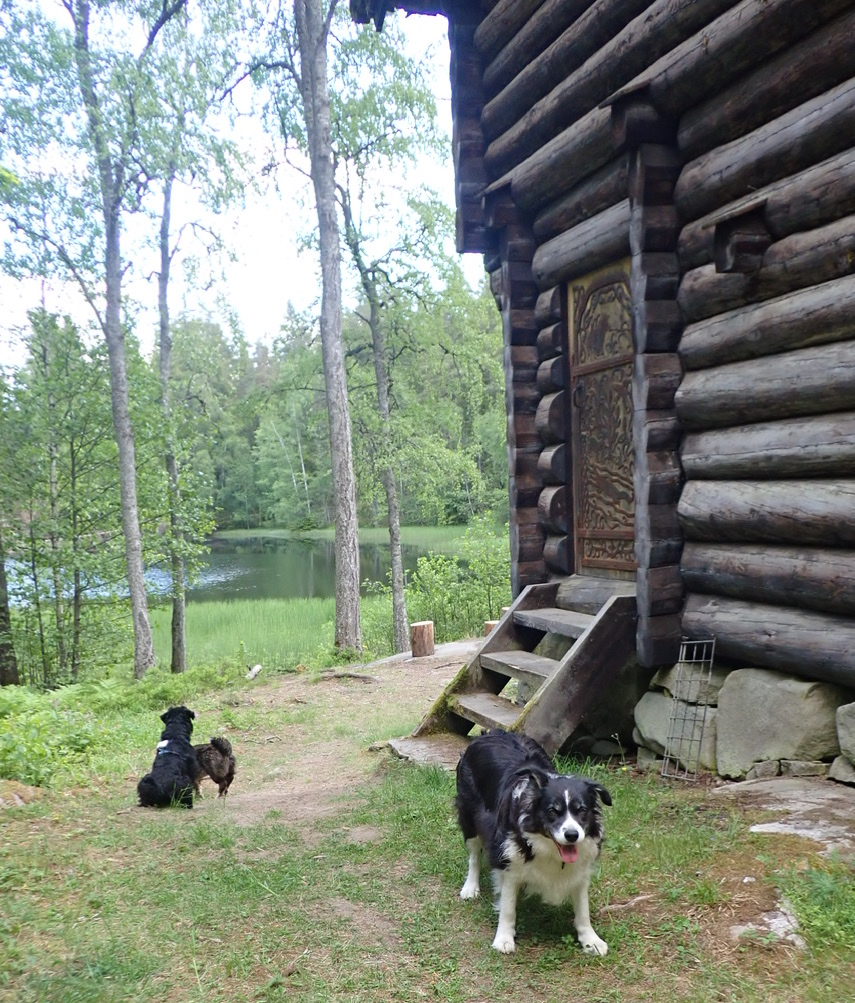Äntligen lite skogspromenad! Vi gjorde sällskap med Helena och järngänget! Matte hade vi på släp som vanligt. Nu skulle turen gå till Von Rosens jaktstuga som jag berättat om tidigare. Vill du veta mer om den kan du läsa bloggen 24-2019