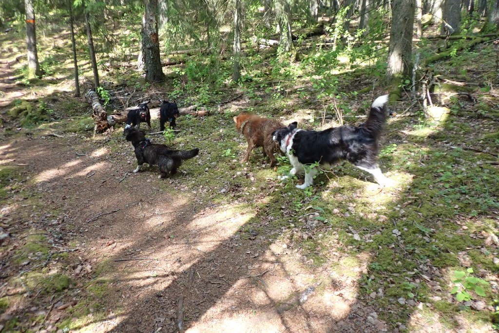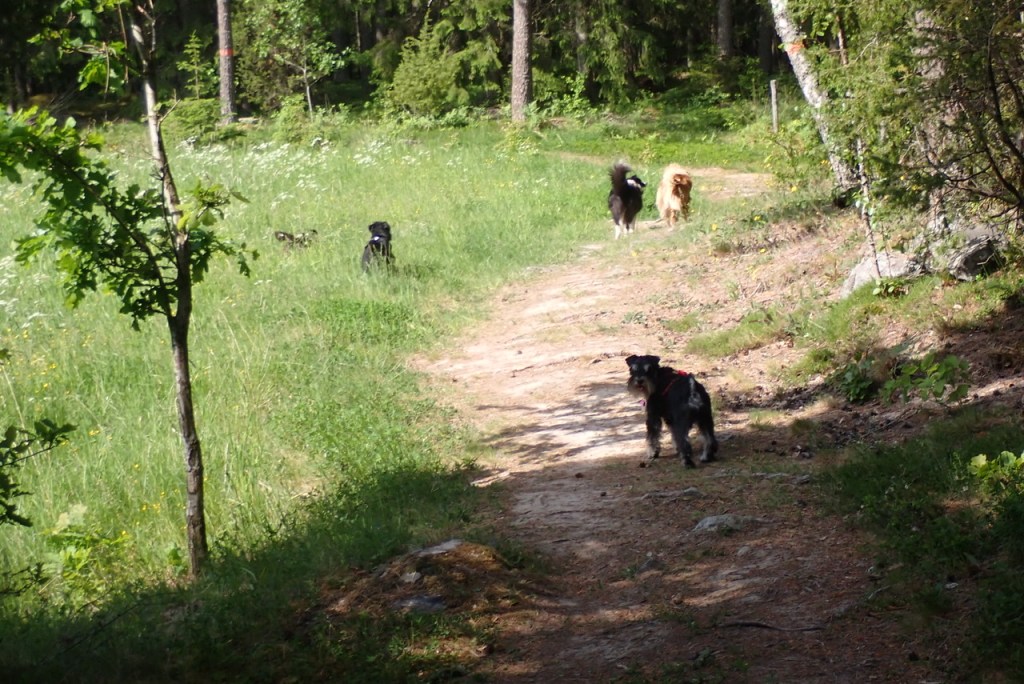 När vi kommit iväg in en bit in i skogen så vi är säkra från bilvägen får vi vara på fria tassar.