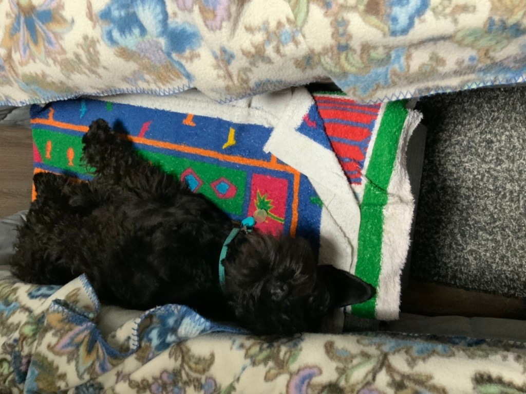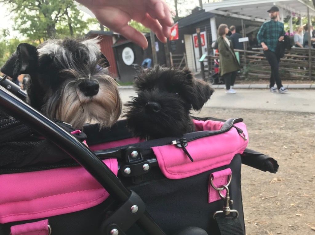 Efter en väldigt varm dag med en fixargalen matte är det mysigt att hoppa in i vagnen och sova sju kvart i timmen. Jag sover hos matte och Troy hos husse men ibland ligger han på ”hopp upp i sängen pallen” Som står mellan sängarna som vi ibland leker vi herren på pallen på.