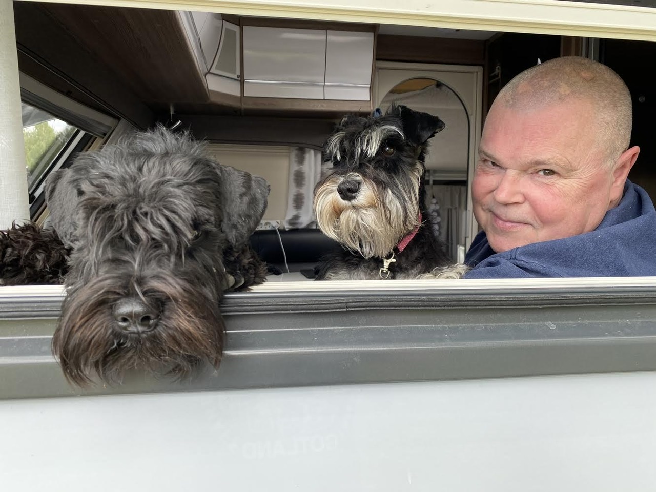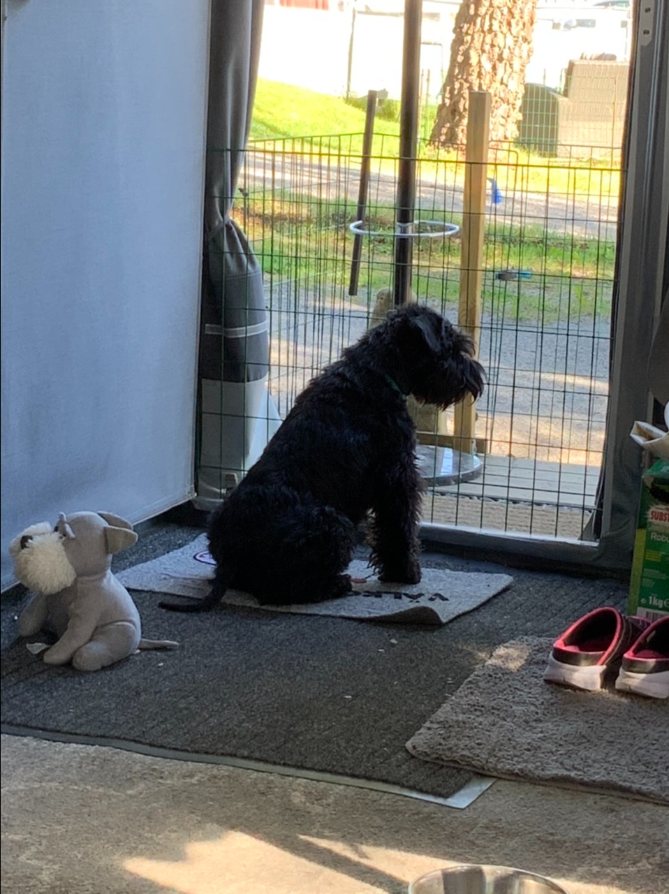 Matte fixar med vagnen, fyller vatten å så. Vi håller noga koll på henne genom vagnens fönster. Husse drog upp myggardinen så vi kunde luta oss ut och pussa henne! Matte sa att det var väldigt mysigt men en pussbutik.