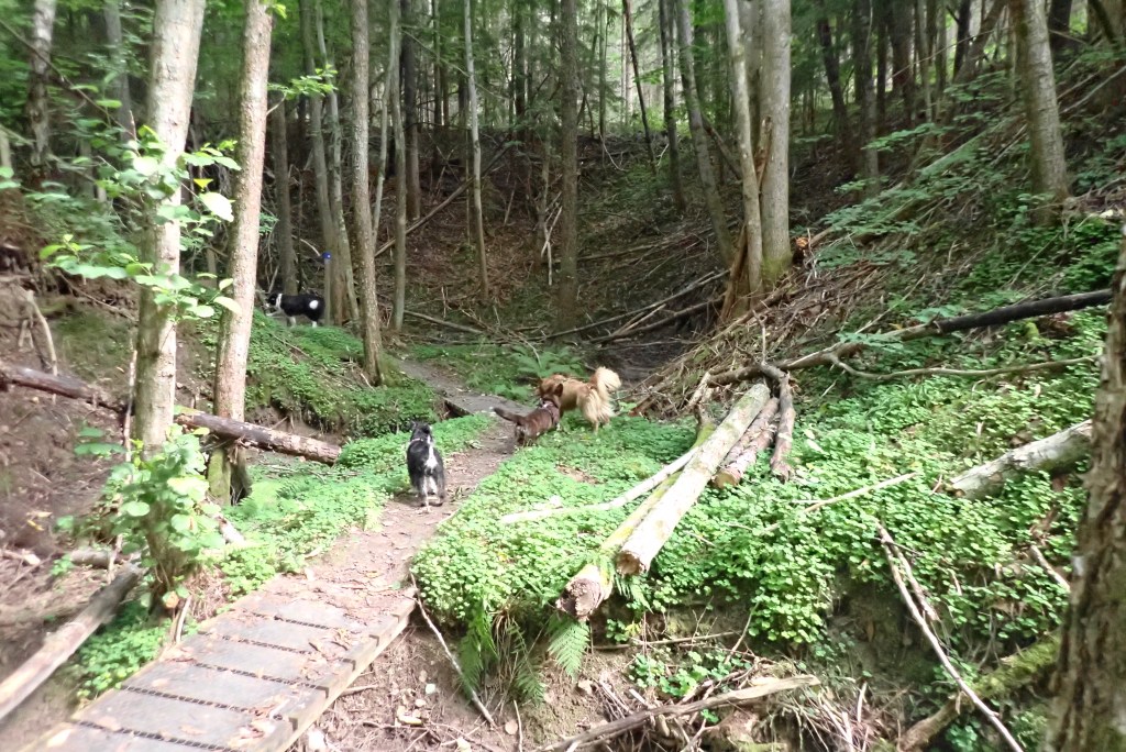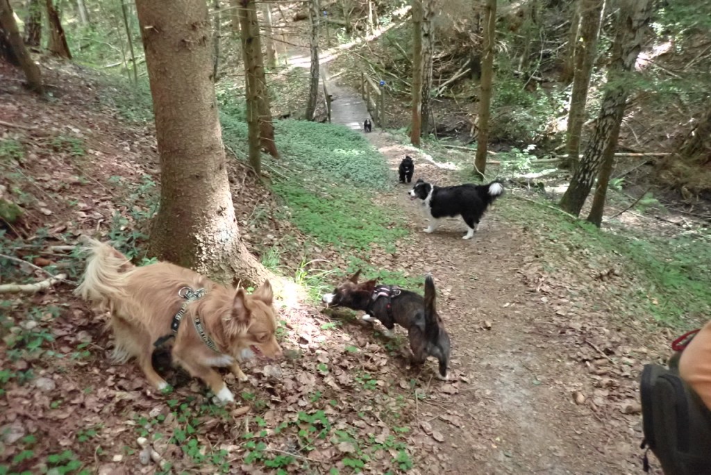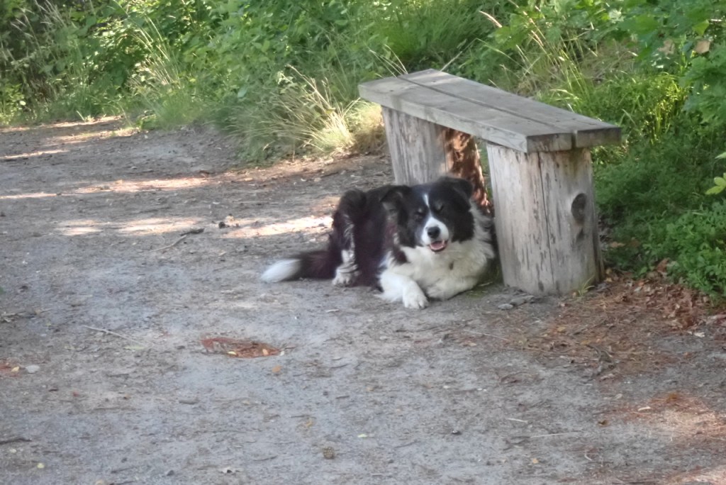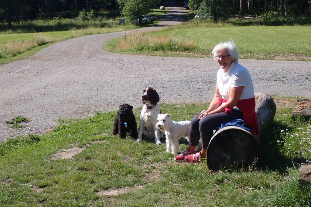 Wilma lunkade på medans vi andra måste undersöka saker längs stigen. Troy har börjat hjälpa till att hålla koll på vår yrmössa till matte. Det blir ett väldigt springande fram och tillbaka. Basse och Jenna hade som vanligt dragkamp om en särskilt fin pinne.