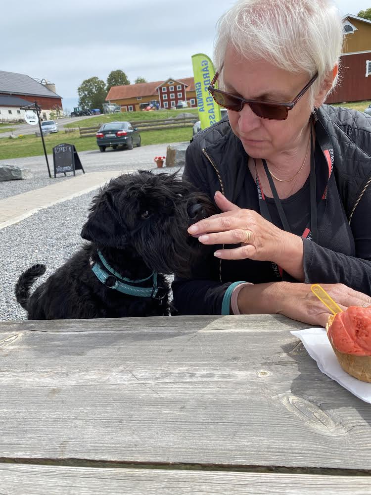När man inte badar kan man ägna sig åt att tigga godis. Inez matte Eva blev uppvaktad.