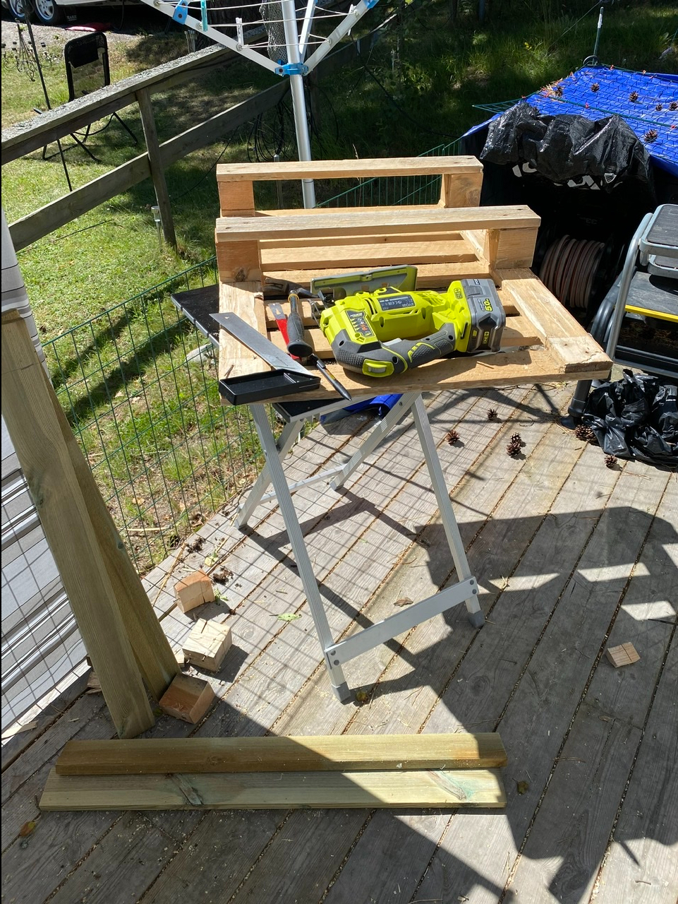 Här kommer den utlovade uppdateringen med resultatet av det blev av det väsnande projektet. Det blev en blomställning av brädhögen.