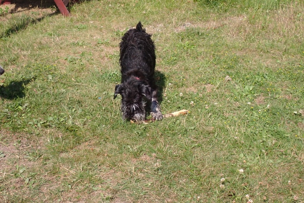 Äntligen kom vi i väg till träffen. Det var inte så många som var före oss, de som var det kom oss till mötes. En ny kille som heter Frasse (en”Westi”) var där, han är 2 år. Wilma kollade om M hade något av Magnus supergodis med sig.