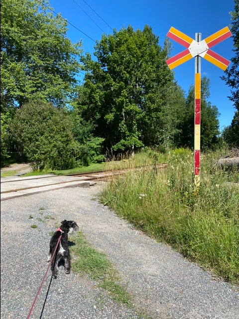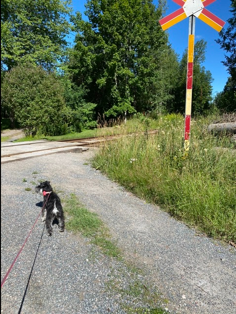 På vägen tillbaka går vi över en obevakad korsning. Det kan komma spårvagnar från båda håll. Det är därför väldigt viktigt att titta 👀 noga innan man går över.