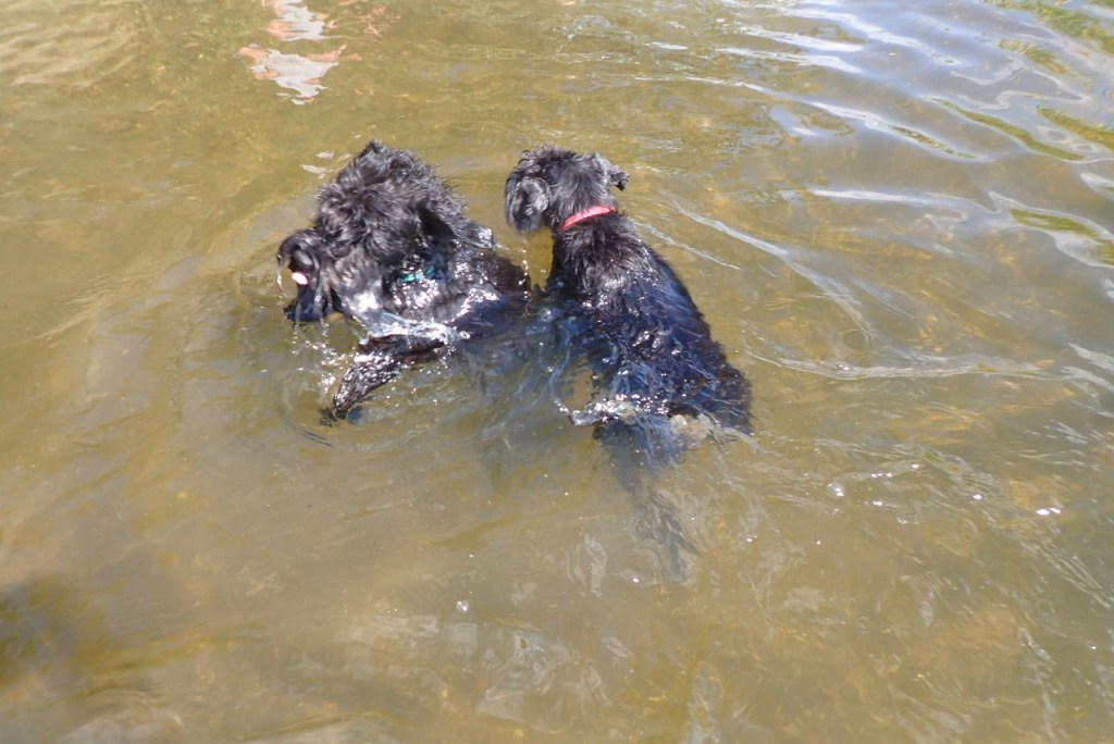 Vi var inte så många hundar vid badet så Troy gick i efter Basse. Han verkar gilla att bada allt eftersom självförtroendet växer rörande förmåga att kunna simma. Å det är klart att inte skall Basse få ha alla pinnar för sig själv.