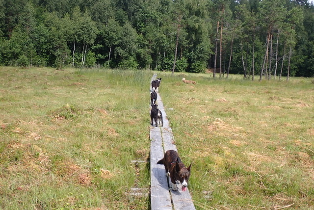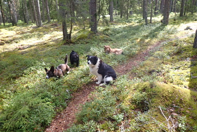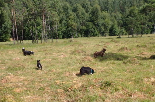Mossen var väldigt torr och det gick bra att springa på den. Basse tog upp sin nya favoritsyssla som är att jaga gräshoppor, de är blixtsnabba. Han hade ingen framgång med det, det enda det leder till är att han också hoppar runt som en gräshoppa. Vi andra minglade och bara hade det väldigt bra!