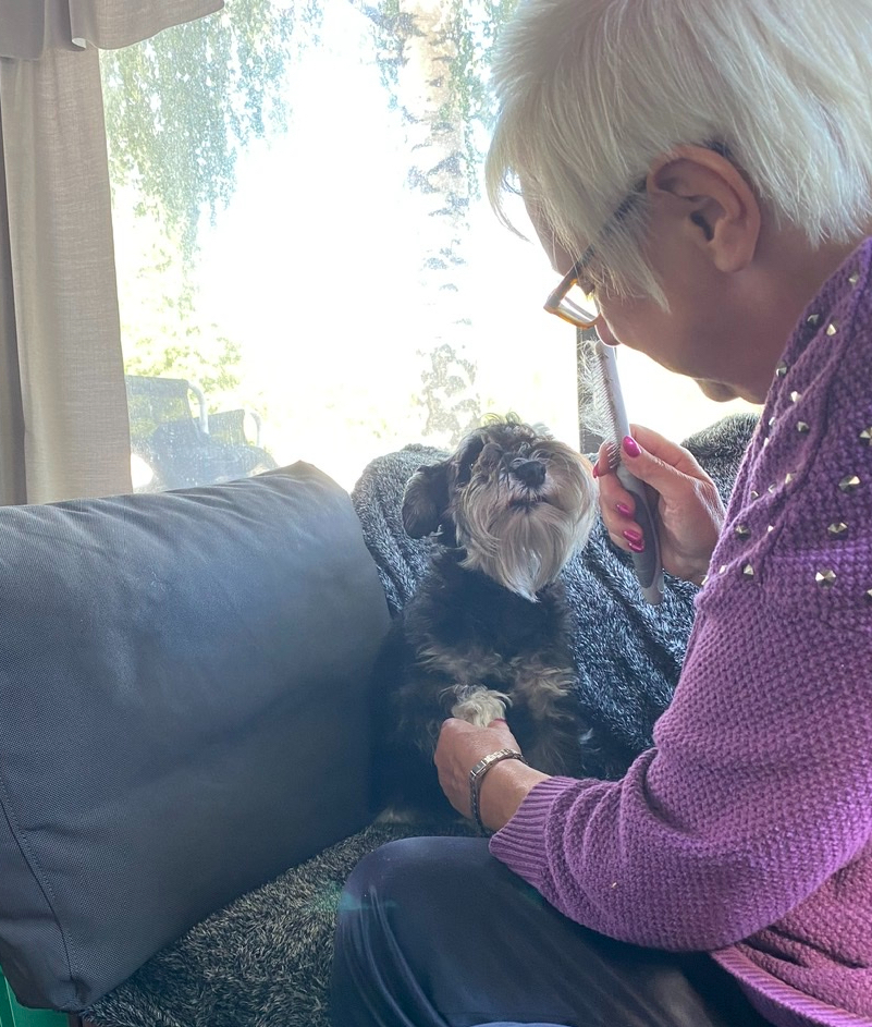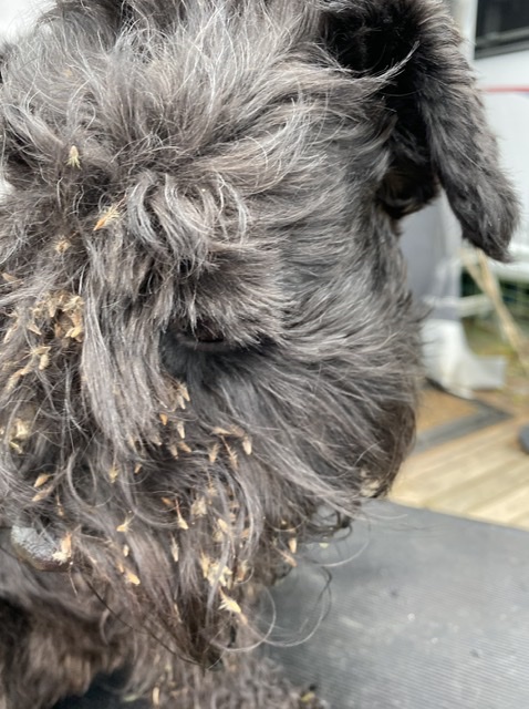 Sen va, när man sitter i soffan och har trevligt vid eftermiddagsfikat då…då kommer tovkammen fram, det skall finkammas så det inte finns några frön i pälsen om man fått en tova den skall prompt redas ut. Inte nödvändigt säger jag men det är som att tala inför döva öron, kammas ska det!