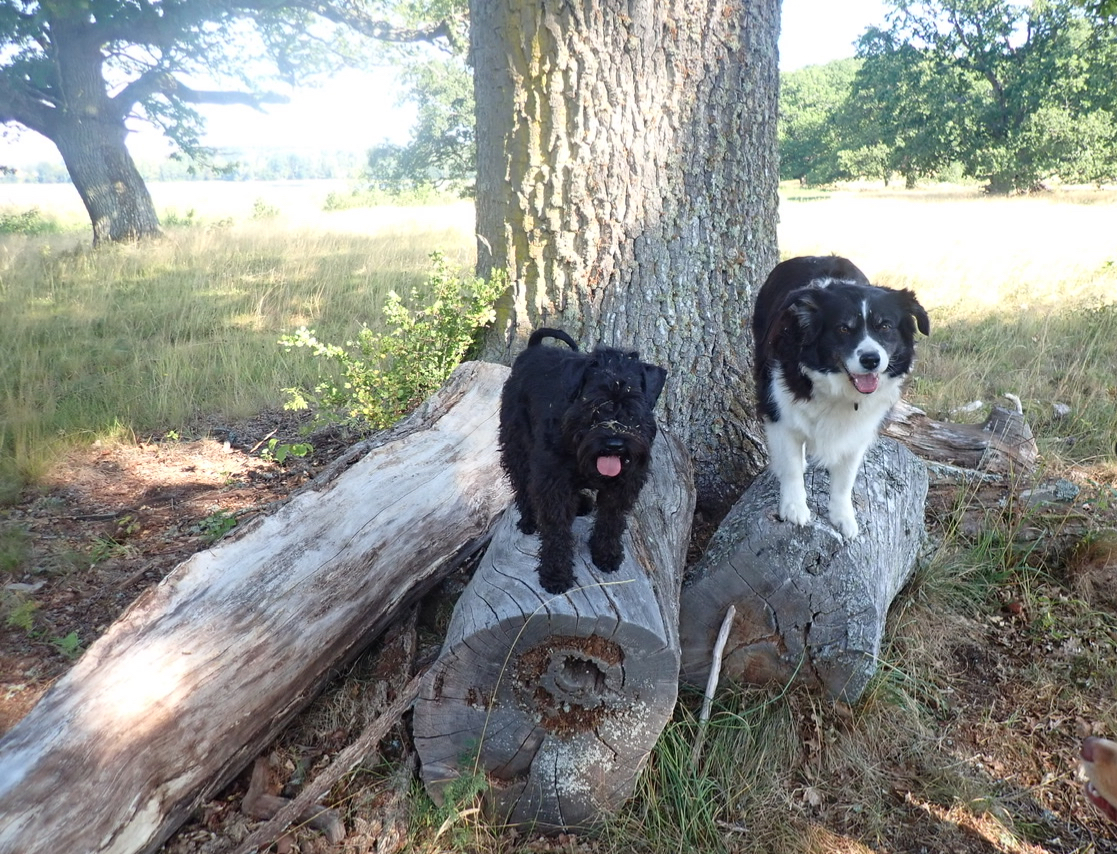 På vägen upp från badet Stack Troy och Basse i väg en bit. De började rulla sig och gnugga kinderna mot något som låg på marken! Basse tog tag i något och satte full fart med Troy i hasorna.