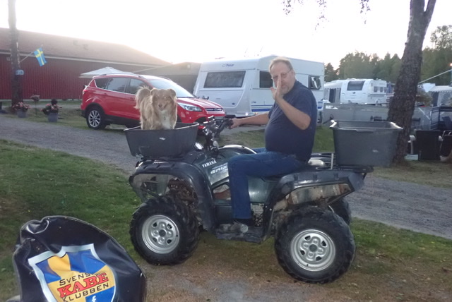 Äntligen tillbaka i min vagn. Tommy och Basse kom förbi på kvällskvisten för en kvällsfika. Basse är en hejare på att åka fyrhjuling.